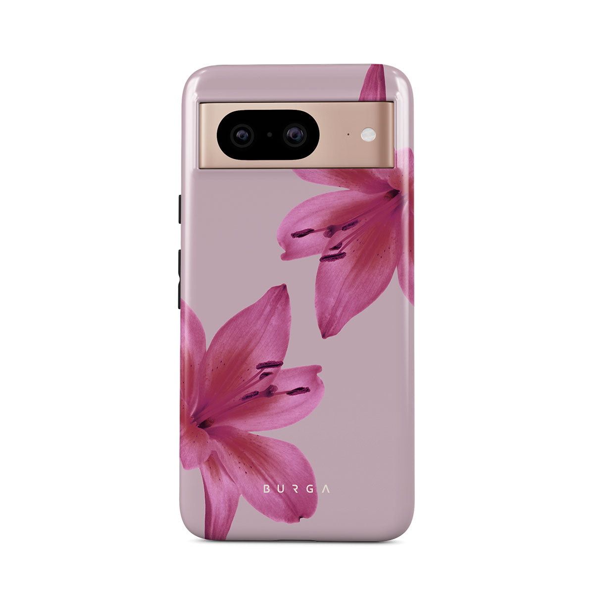 A gentle hush of pink forms where soft lilies sway. Their tender petals — a silent ode to the delicate dance of life. The Fragile Beauty Google Pixel 8 phone case design invites you to lean into the soft embrace of nature, letting its subtle rhythms guide your journey.