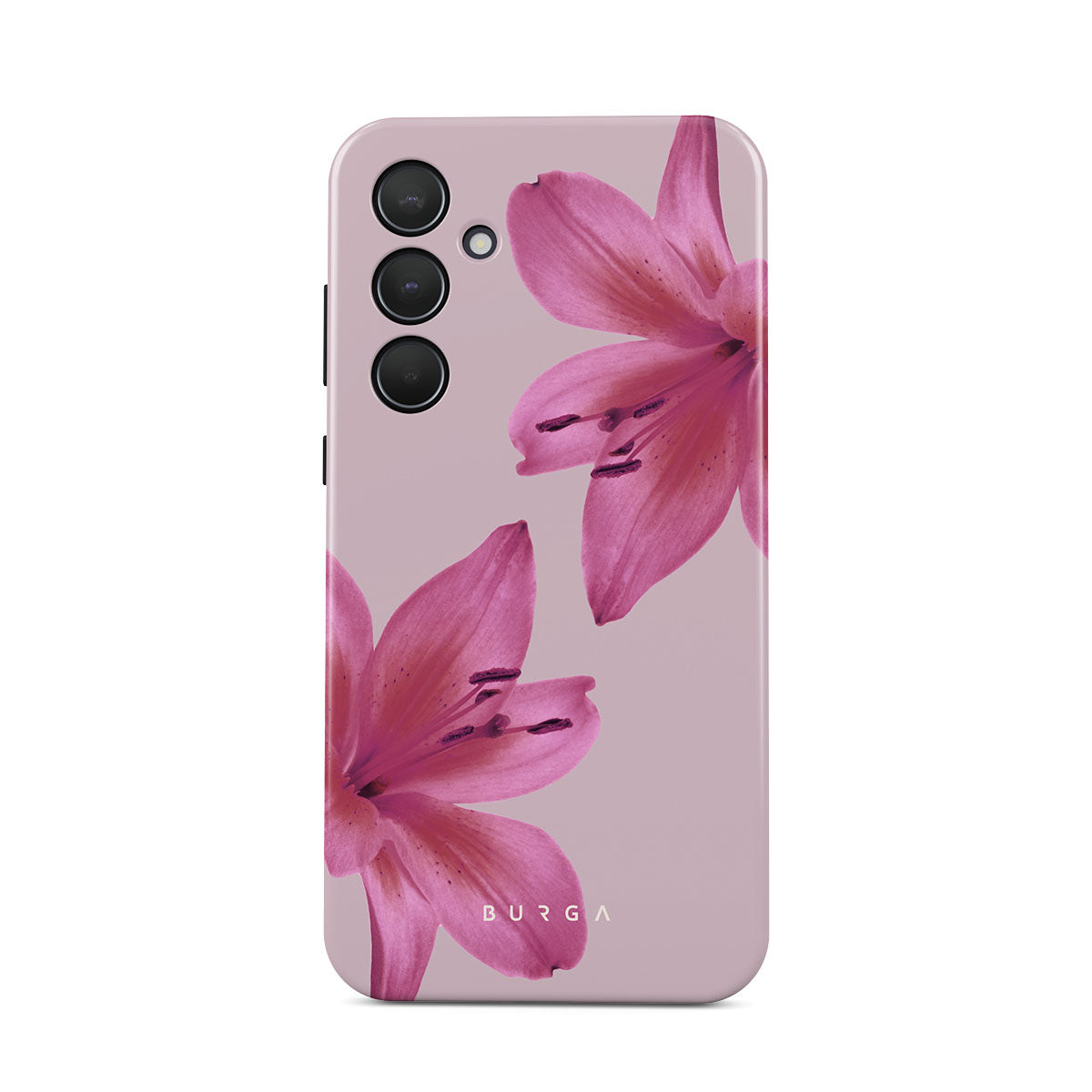 A gentle hush of pink forms where soft lilies sway. Their tender petals — a silent ode to the delicate dance of life. The Fragile Beauty Samsung Galaxy A35 phone case design invites you to lean into the soft embrace of nature, letting its subtle rhythms guide your journey.