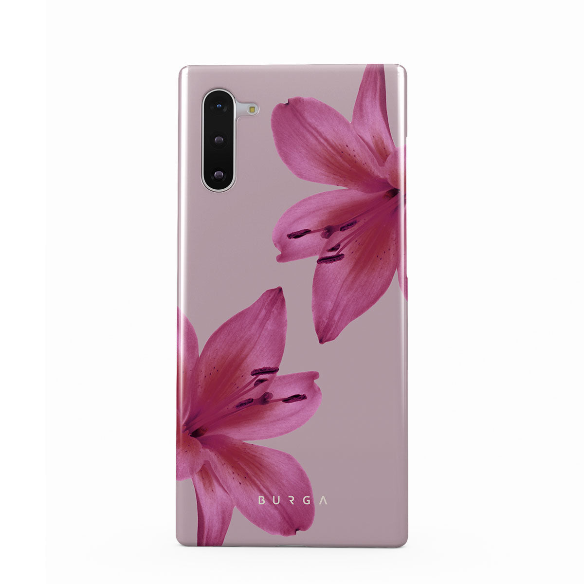 A gentle hush of pink forms where soft lilies sway. Their tender petals — a silent ode to the delicate dance of life. The Fragile Beauty Samsung Galaxy Note 10 phone case design invites you to lean into the soft embrace of nature, letting its subtle rhythms guide your journey.
