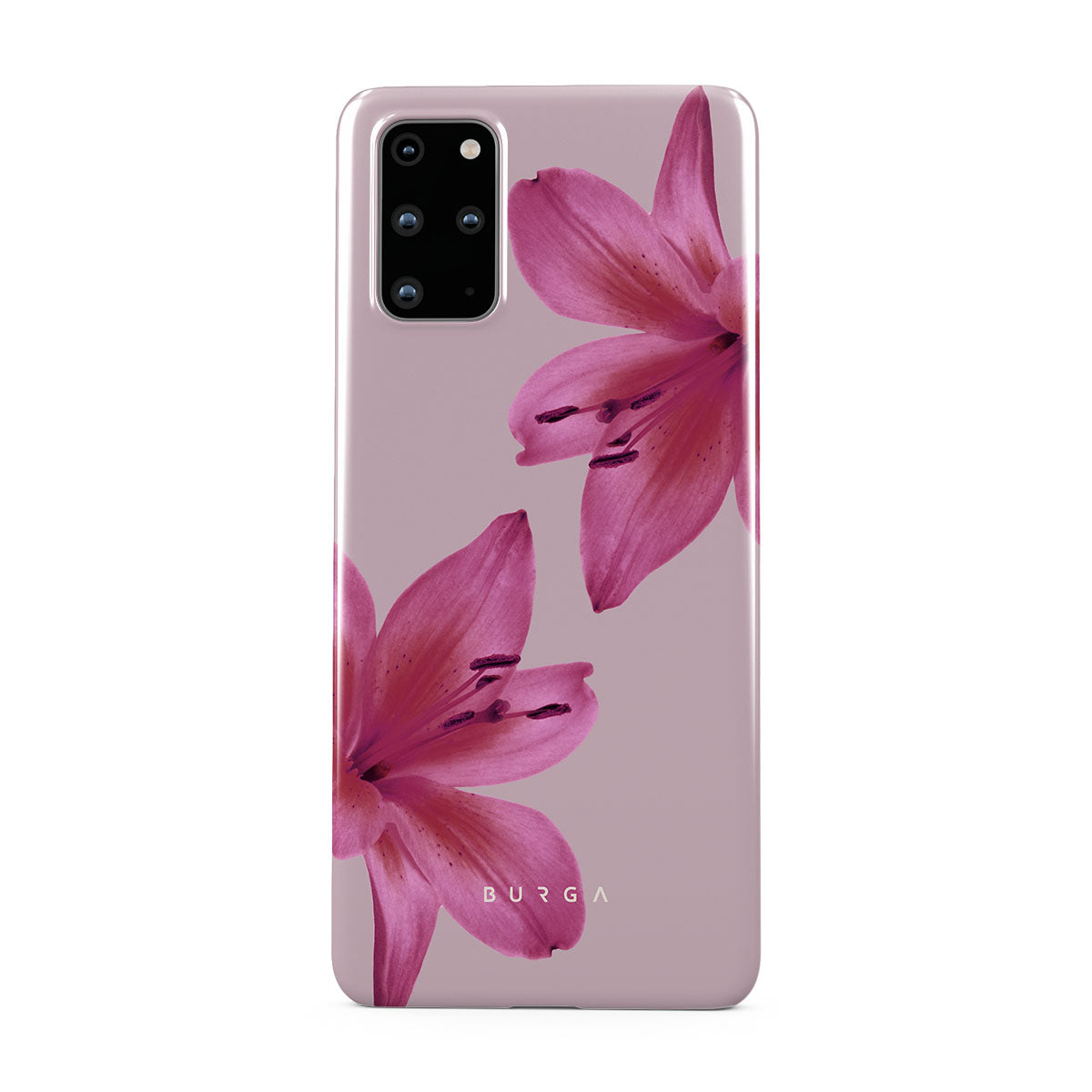 A gentle hush of pink forms where soft lilies sway. Their tender petals — a silent ode to the delicate dance of life. The Fragile Beauty Samsung Galaxy S20 Plus 4G / 5G phone case design invites you to lean into the soft embrace of nature, letting its subtle rhythms guide your journey.