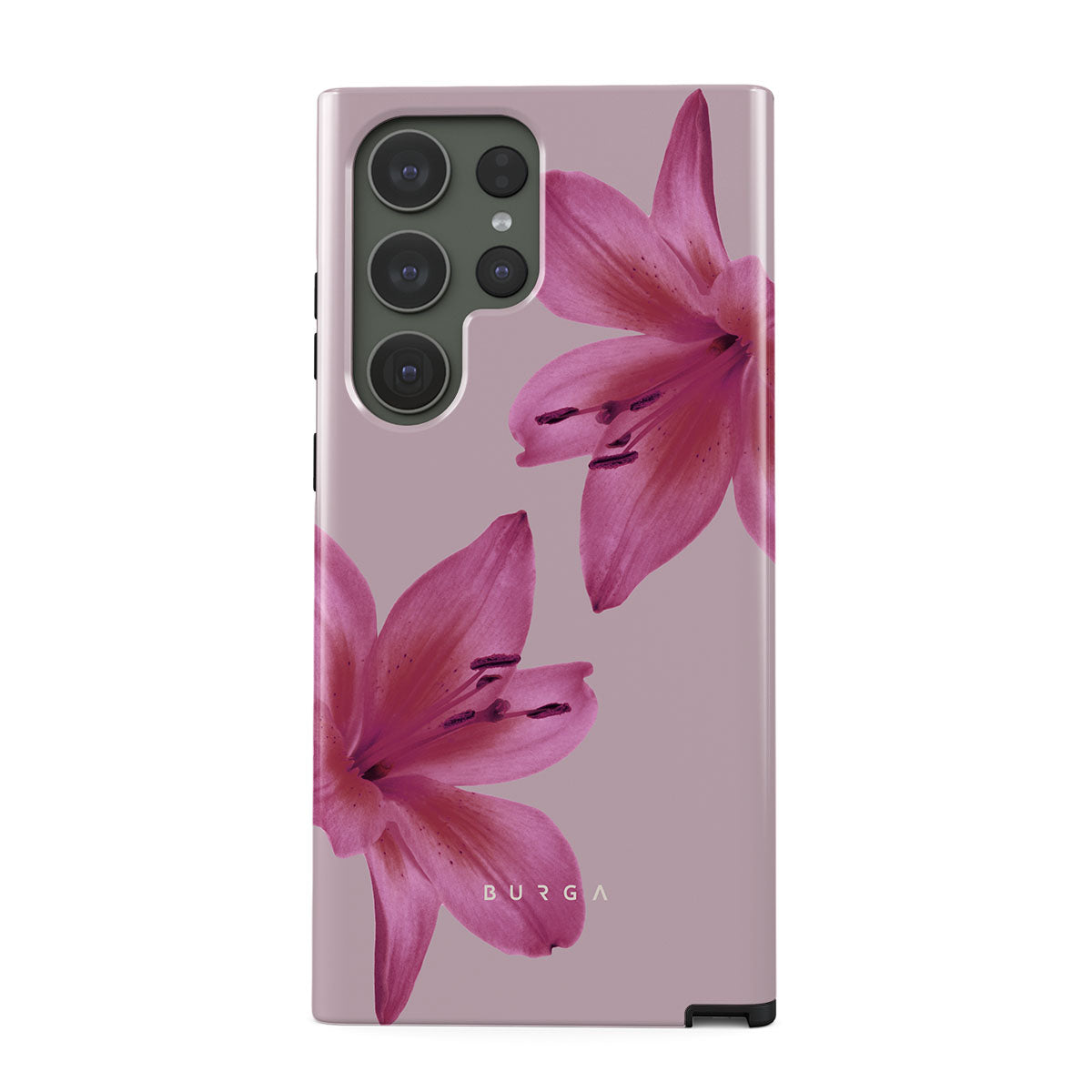 A gentle hush of pink forms where soft lilies sway. Their tender petals — a silent ode to the delicate dance of life. The Fragile Beauty Samsung Galaxy S23 Ultra phone case design invites you to lean into the soft embrace of nature, letting its subtle rhythms guide your journey.