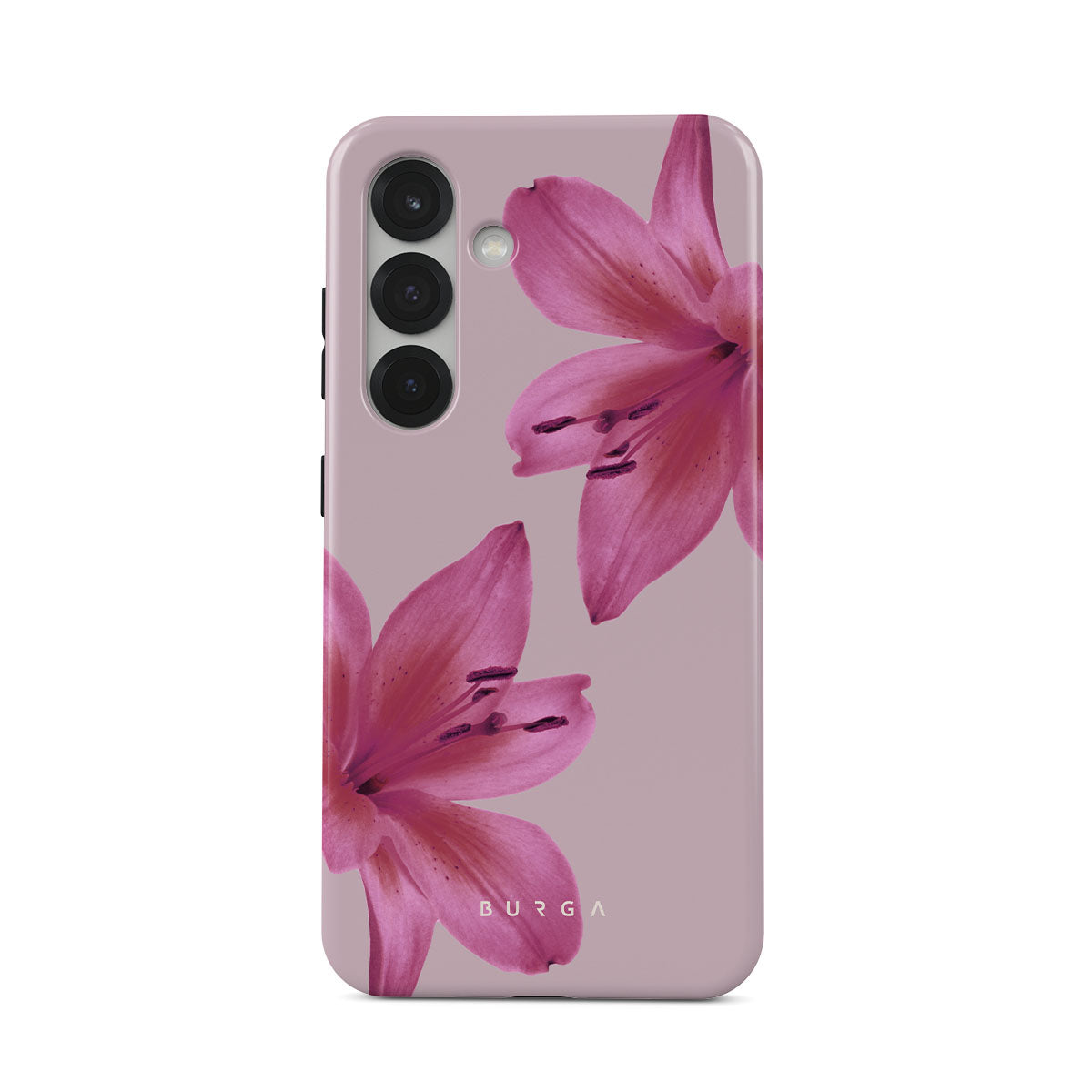 A gentle hush of pink forms where soft lilies sway. Their tender petals — a silent ode to the delicate dance of life. The Fragile Beauty Samsung Galaxy S25 Plus phone case design invites you to lean into the soft embrace of nature, letting its subtle rhythms guide your journey.