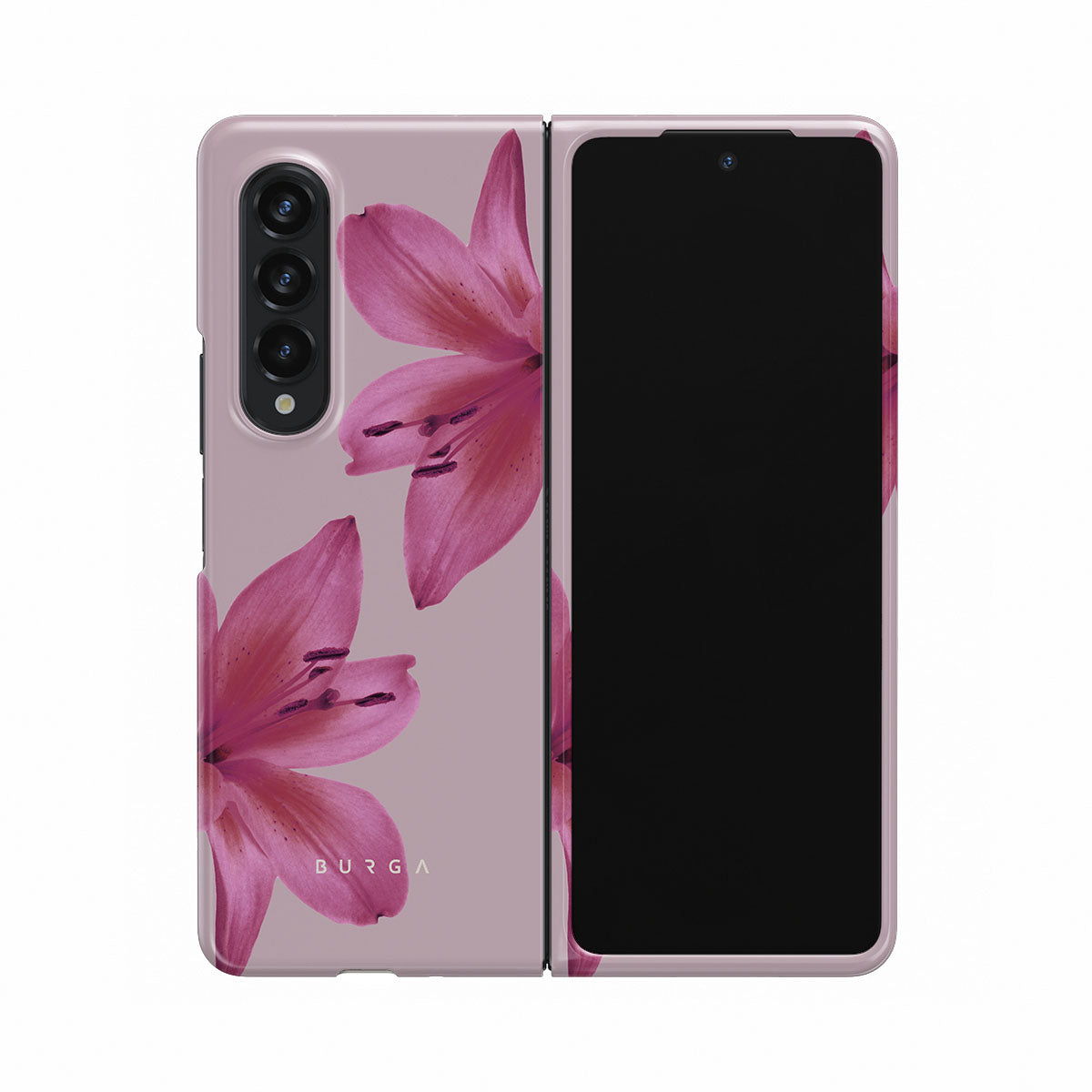 A gentle hush of pink forms where soft lilies sway. Their tender petals — a silent ode to the delicate dance of life. The Fragile Beauty Samsung Galaxy Z Fold 3 phone case design invites you to lean into the soft embrace of nature, letting its subtle rhythms guide your journey.