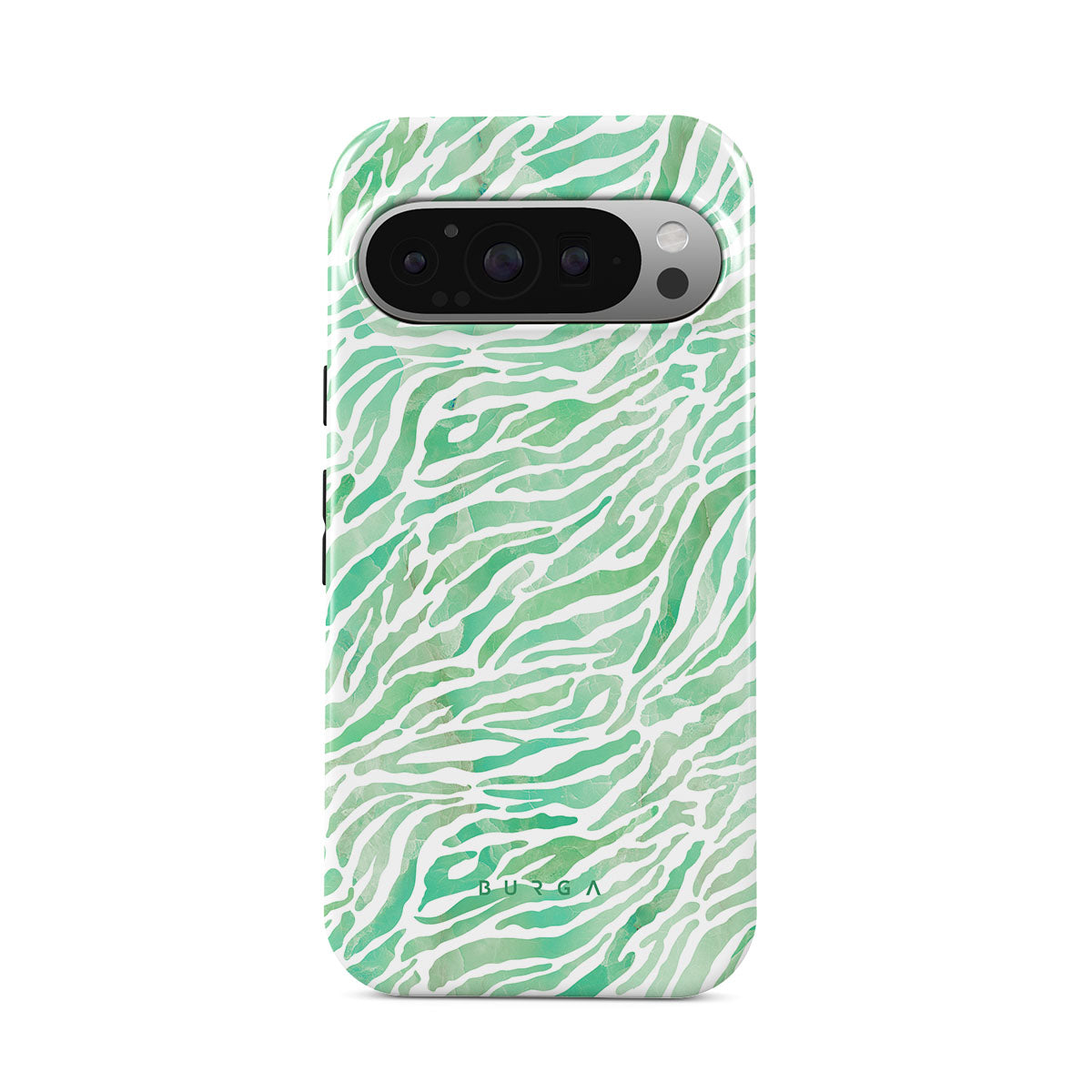 Our Free Spirit Google Pixel 9 Pro XL phone case features an exotic zebra pattern in varying shades of green. Keep your spirits up, as there is no need to worry about your phone, as this trendy case is not only pretty but offers the heavy-duty protection that your cellphone requires.