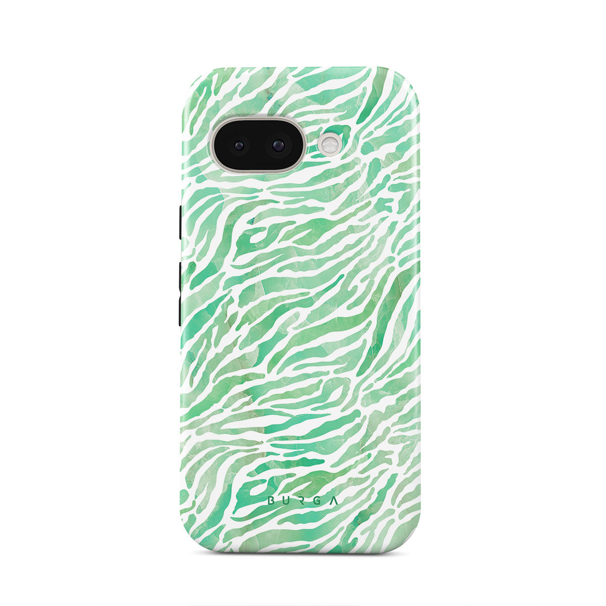 Our Free Spirit Google Pixel 9a phone case features an exotic zebra pattern in varying shades of green. Keep your spirits up, as there is no need to worry about your phone, as this trendy case is not only pretty but offers the heavy-duty protection that your cellphone requires.