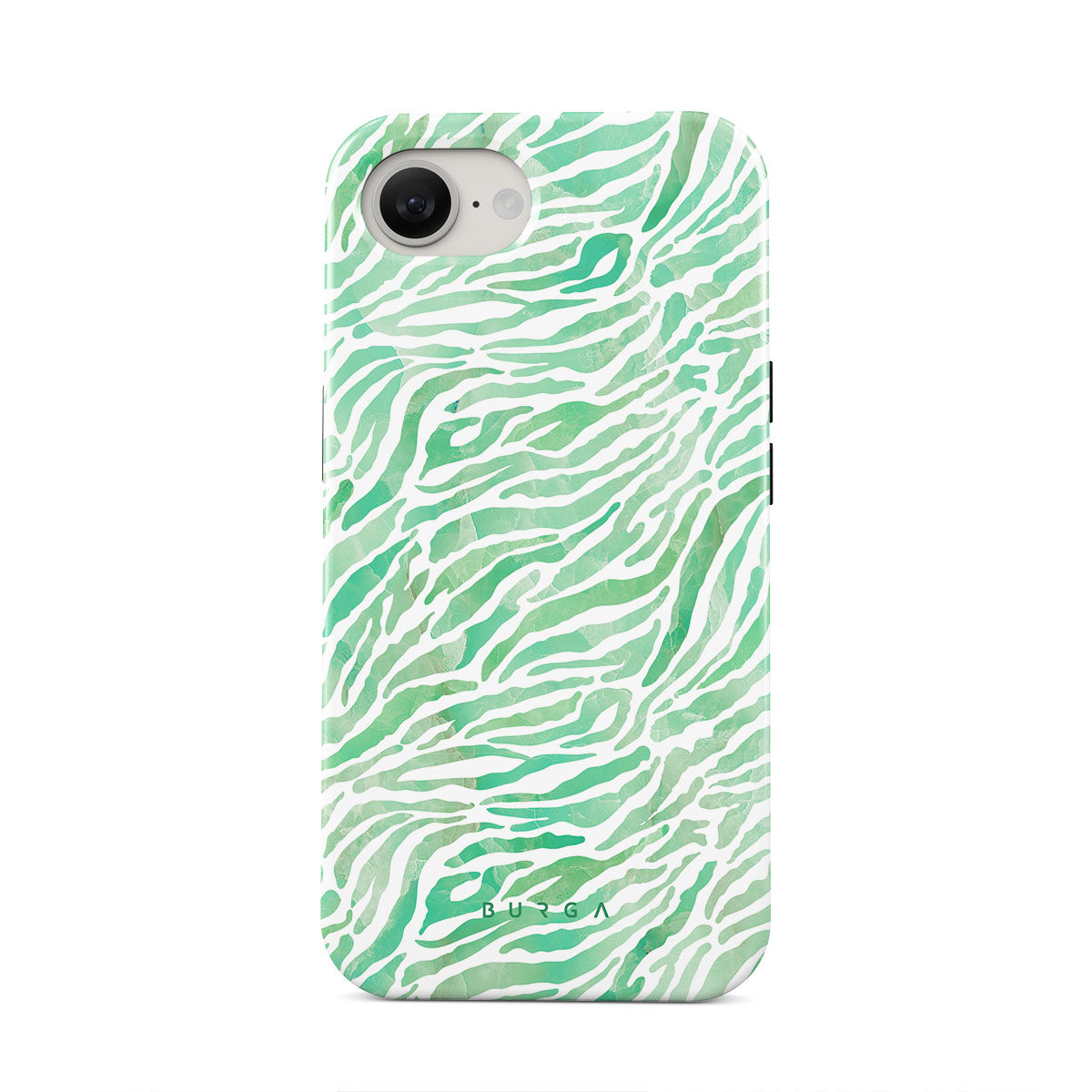 Our Free Spirit iPhone 16e phone case features an exotic zebra pattern in varying shades of green. Keep your spirits up, as there is no need to worry about your phone, as this trendy case is not only pretty but offers the heavy-duty protection that your cellphone requires.