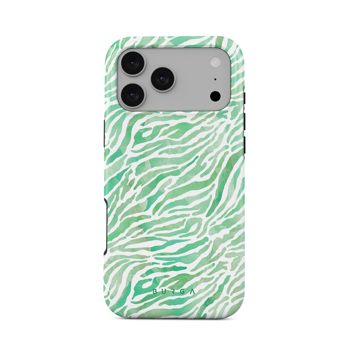 Our Free Spirit iPhone 17 Pro Max phone case features an exotic zebra pattern in varying shades of green. Keep your spirits up, as there is no need to worry about your phone, as this trendy case is not only pretty but offers the heavy-duty protection that your cellphone requires.