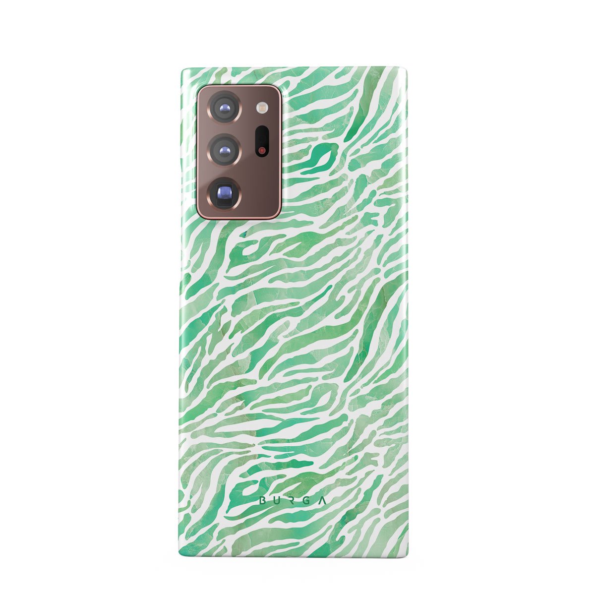 Our Free Spirit Samsung Galaxy Note 20 Ultra 4G / 5G phone case features an exotic zebra pattern in varying shades of green. Keep your spirits up, as there is no need to worry about your phone, as this trendy case is not only pretty but offers the heavy-duty protection that your cellphone requires.