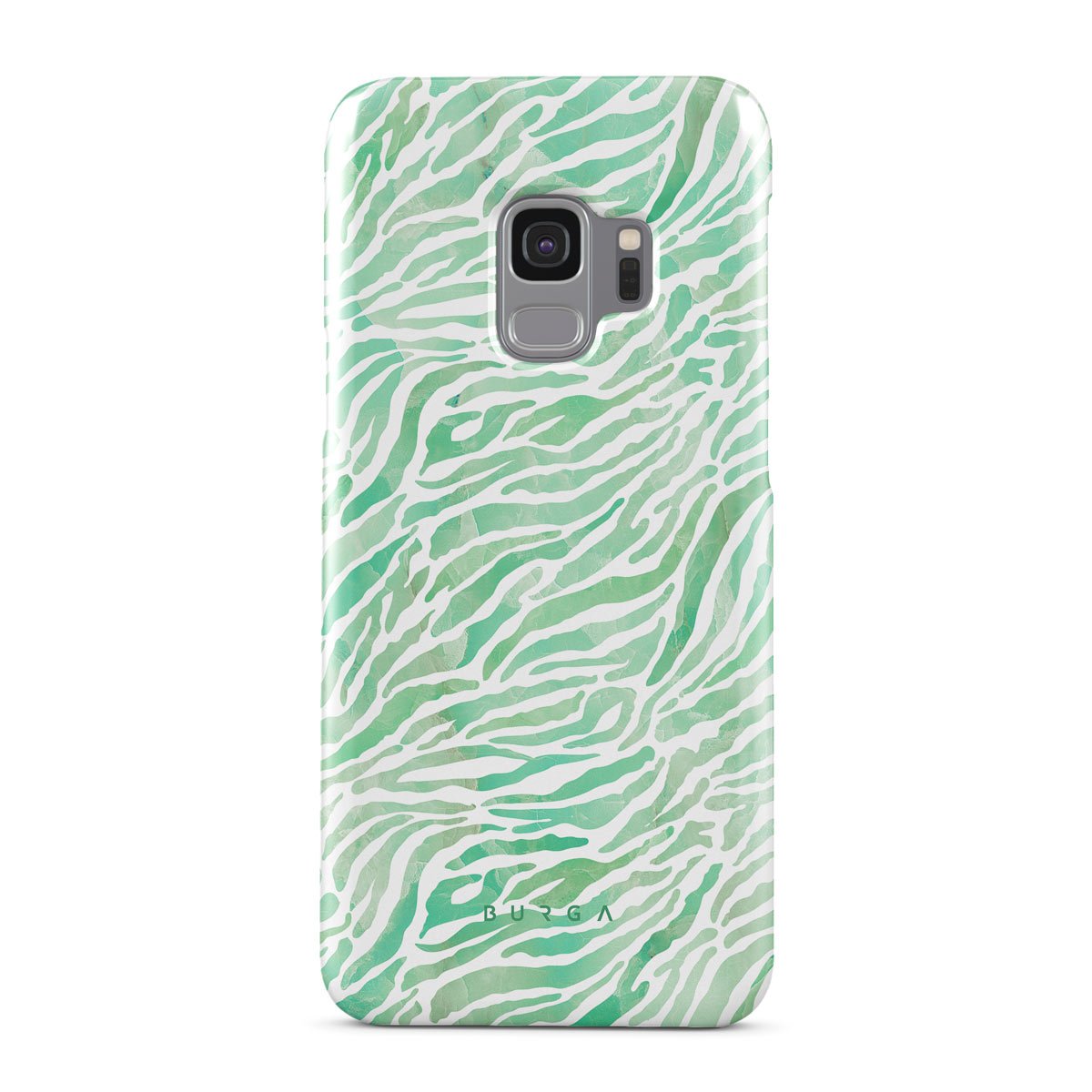 Our Free Spirit Samsung Galaxy S9 phone case features an exotic zebra pattern in varying shades of green. Keep your spirits up, as there is no need to worry about your phone, as this trendy case is not only pretty but offers the heavy-duty protection that your cellphone requires.
