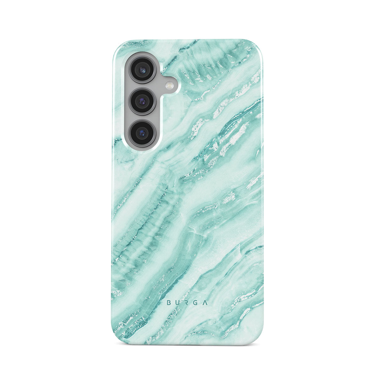 Add freshness to your style with our Fresh Breeze Samsung Galaxy S24 Plus phone case. The soft cyan color of the case is emphasized in a unique marble pattern. Do not let the softness of the color deceive you; the case still offers heavy-duty protection for your cellphone.