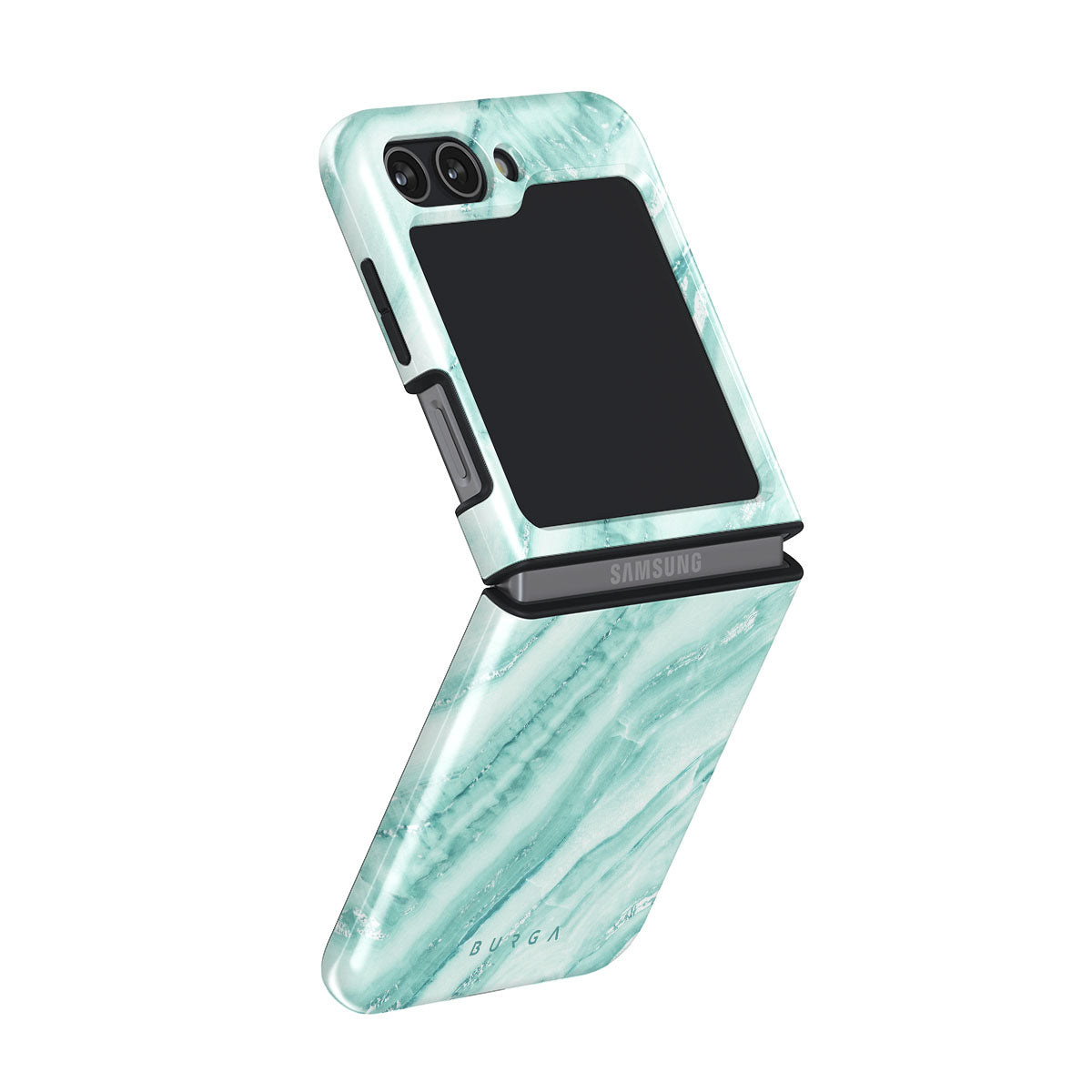 Add freshness to your style with our Fresh Breeze Samsung Galaxy Z Flip 5 phone case. The soft cyan color of the case is emphasized in a unique marble pattern. Do not let the softness of the color deceive you; the case still offers heavy-duty protection for your cellphone.