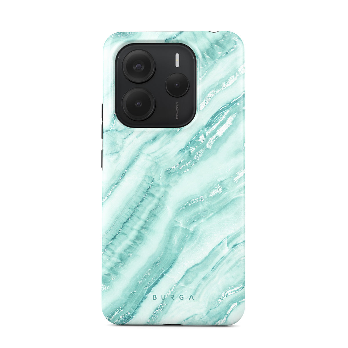 Add freshness to your style with our Fresh Breeze Xiaomi Redmi Note 14 5G phone case. The soft cyan color of the case is emphasized in a unique marble pattern. Do not let the softness of the color deceive you; the case still offers heavy-duty protection for your cellphone.
