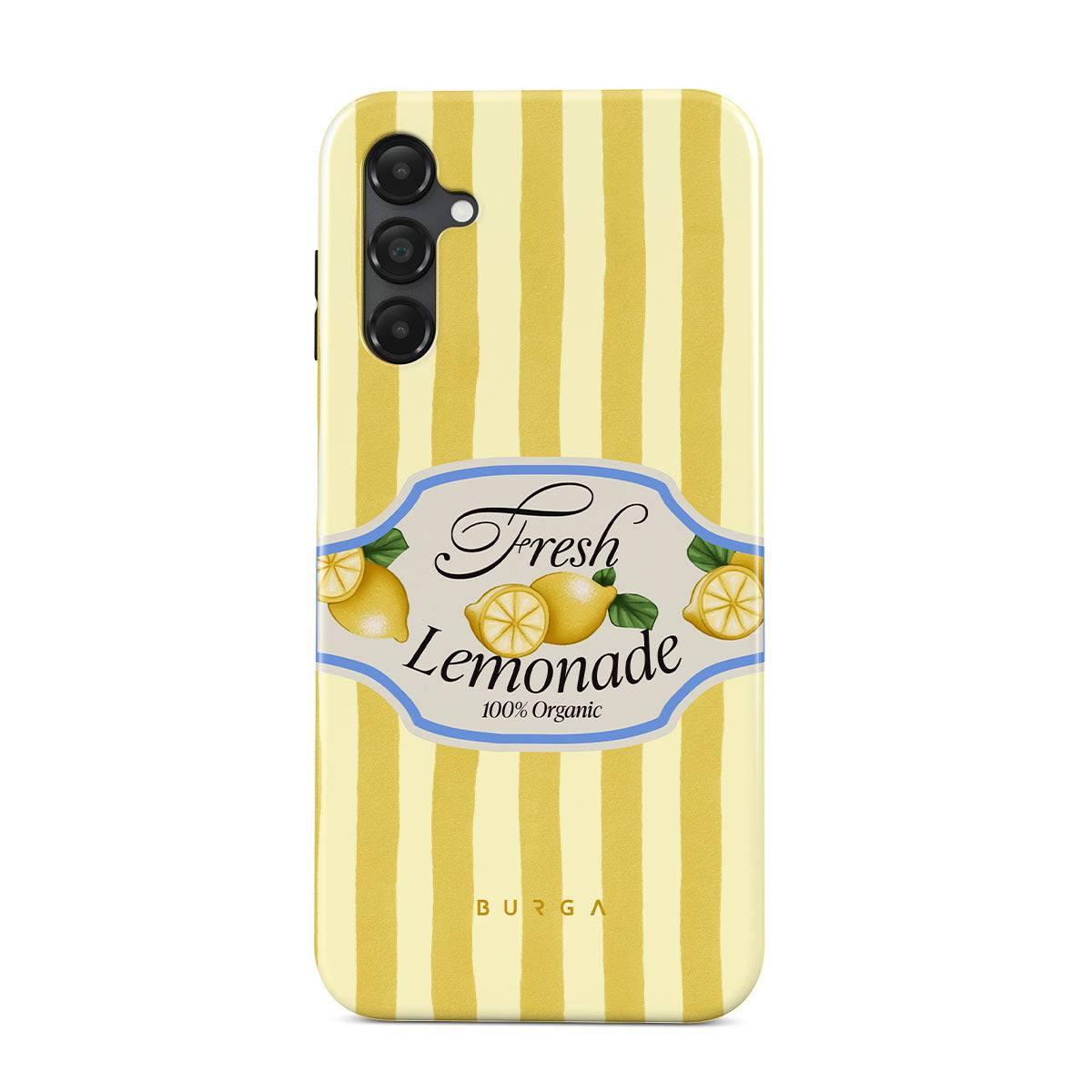 This design features: lemons, yellow stripes, playful graphics