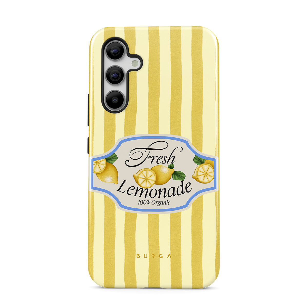 This design features: lemons, yellow stripes, playful graphics
