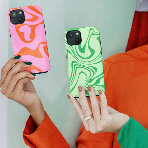 Our Funky Sensation iPhone 16 Pro phone case design is a perfect abstract piece for those who love soft pastel colors but still want to stand out. A sharper take on the liquid swirl design in green shades will accompany your device perfectly.