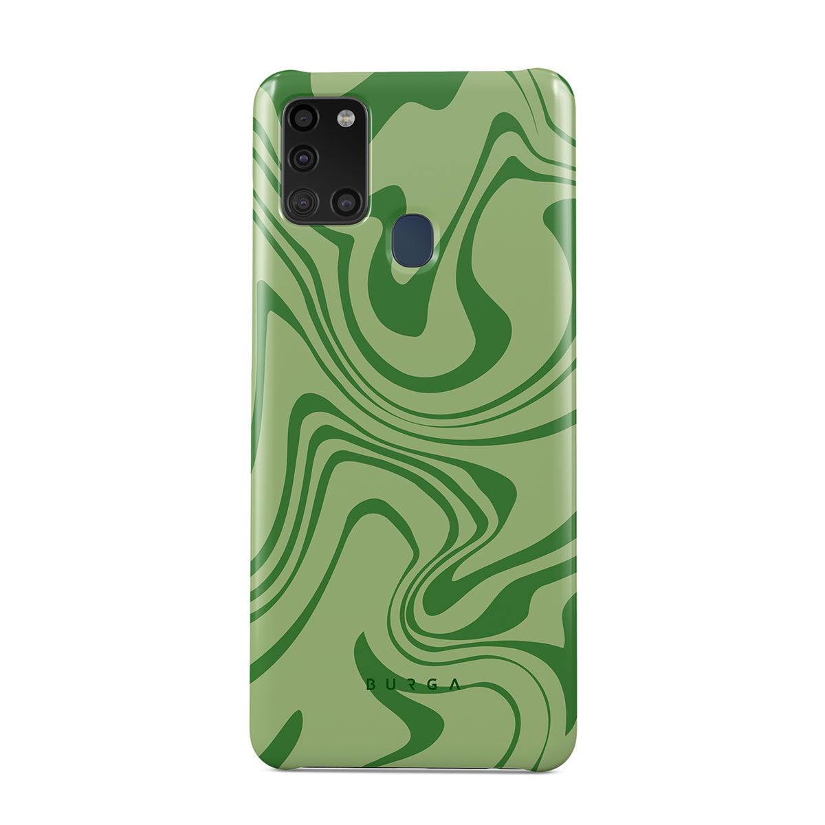 Our Funky Sensation Samsung Galaxy A21s 4G phone case design is a perfect abstract piece for those who love soft pastel colors but still want to stand out. A sharper take on the liquid swirl design in green shades will accompany your device perfectly.