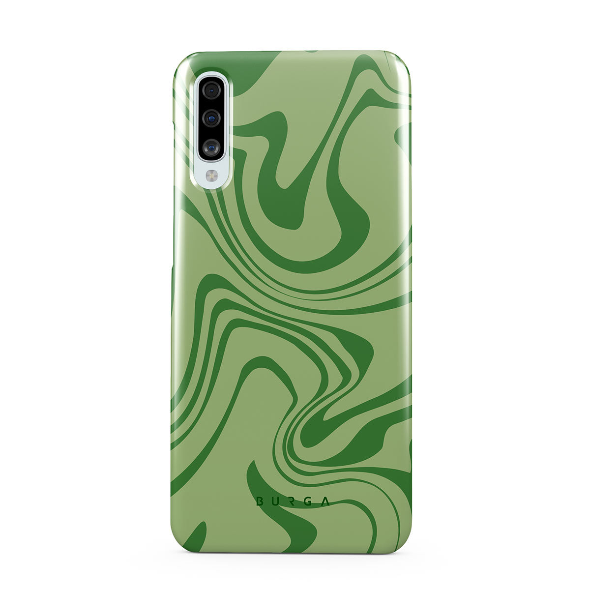Our Funky Sensation Samsung Galaxy A50 phone case design is a perfect abstract piece for those who love soft pastel colors but still want to stand out. A sharper take on the liquid swirl design in green shades will accompany your device perfectly.