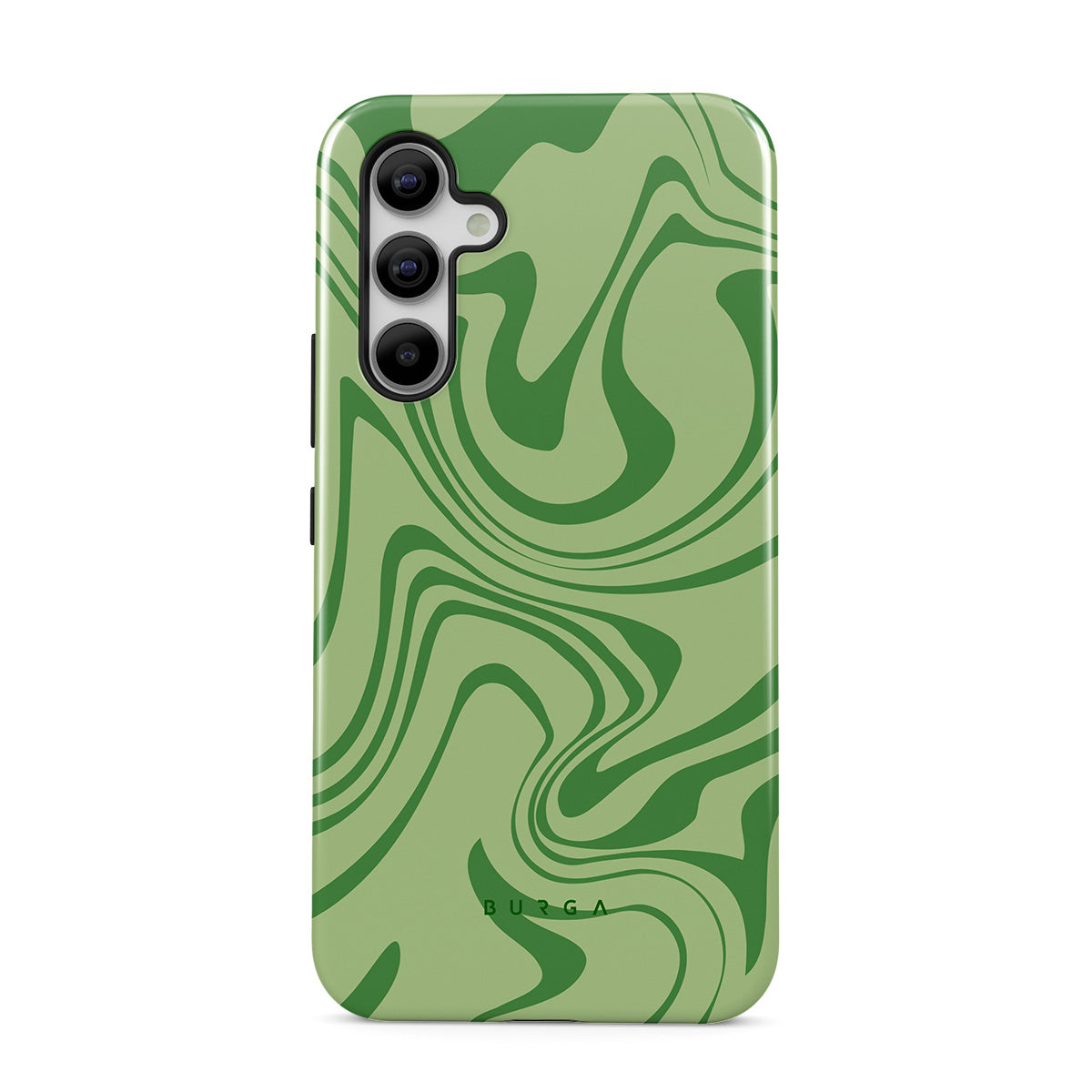 Our Funky Sensation Samsung Galaxy A55 phone case design is a perfect abstract piece for those who love soft pastel colors but still want to stand out. A sharper take on the liquid swirl design in green shades will accompany your device perfectly.