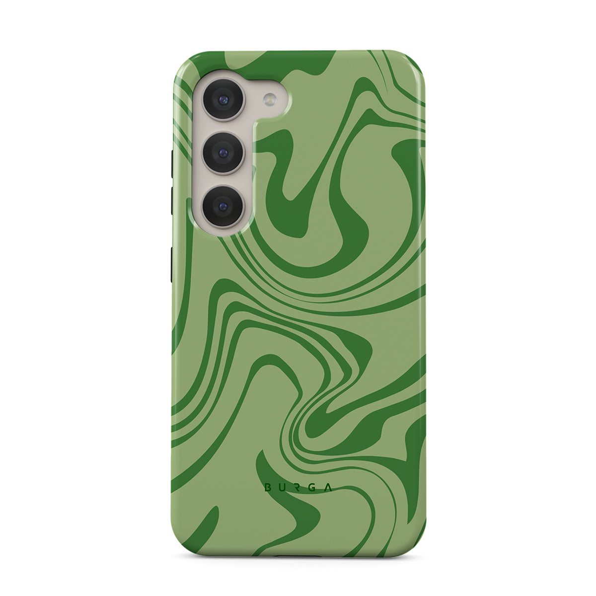 Our Funky Sensation Samsung Galaxy S23 phone case design is a perfect abstract piece for those who love soft pastel colors but still want to stand out. A sharper take on the liquid swirl design in green shades will accompany your device perfectly.