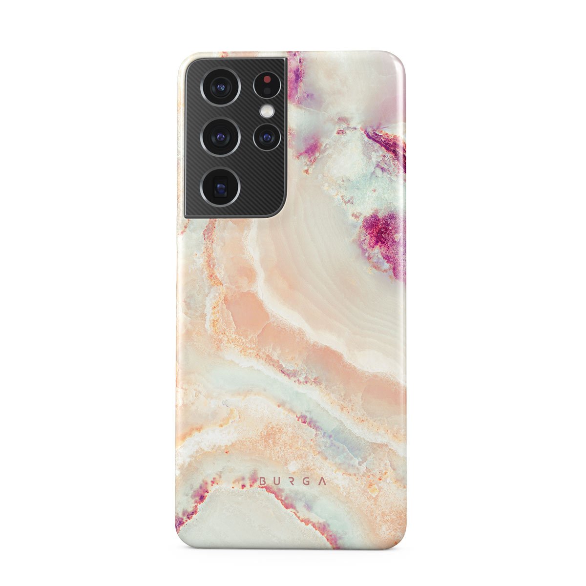 The soft color scheme of coral, pink, blue, and purple of our Berry Sorbet Samsung Galaxy S21 Ultra phone case radiates soft girly vibes. The feminine touch is felt throughout the design, making it an excellent choice to add to the springtime wardrobe and protect your phone from scratches and falls.