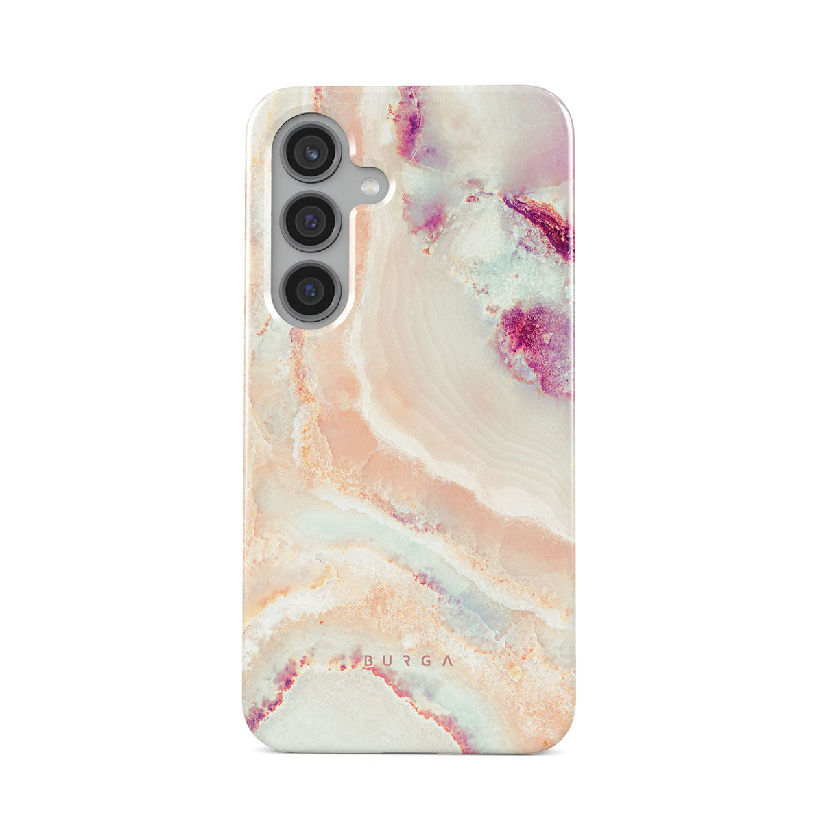 The soft color scheme of coral, pink, blue, and purple of our Berry Sorbet Samsung Galaxy S24 Plus phone case radiates soft girly vibes. The feminine touch is felt throughout the design, making it an excellent choice to add to the springtime wardrobe and protect your phone from scratches and falls.
