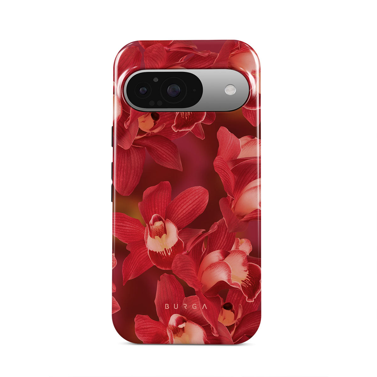The deep red orchids emerge with a passionate intensity, evoking the fervor and depth of emotions that come with fully experiencing life. They are a vibrant call to embrace every heartbeat, to live deeply and love boldly. Discover the Goddess Energy Google Pixel 9 phone case design.