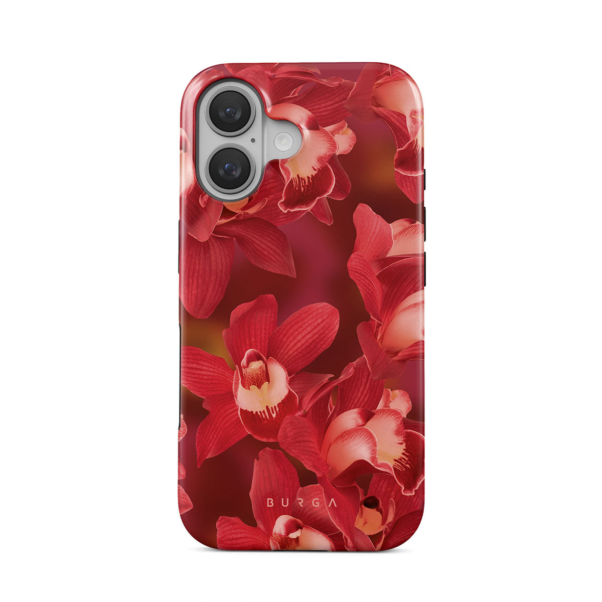 The deep red orchids emerge with a passionate intensity, evoking the fervor and depth of emotions that come with fully experiencing life. They are a vibrant call to embrace every heartbeat, to live deeply and love boldly. Discover the Goddess Energy iPhone 16 phone case design.