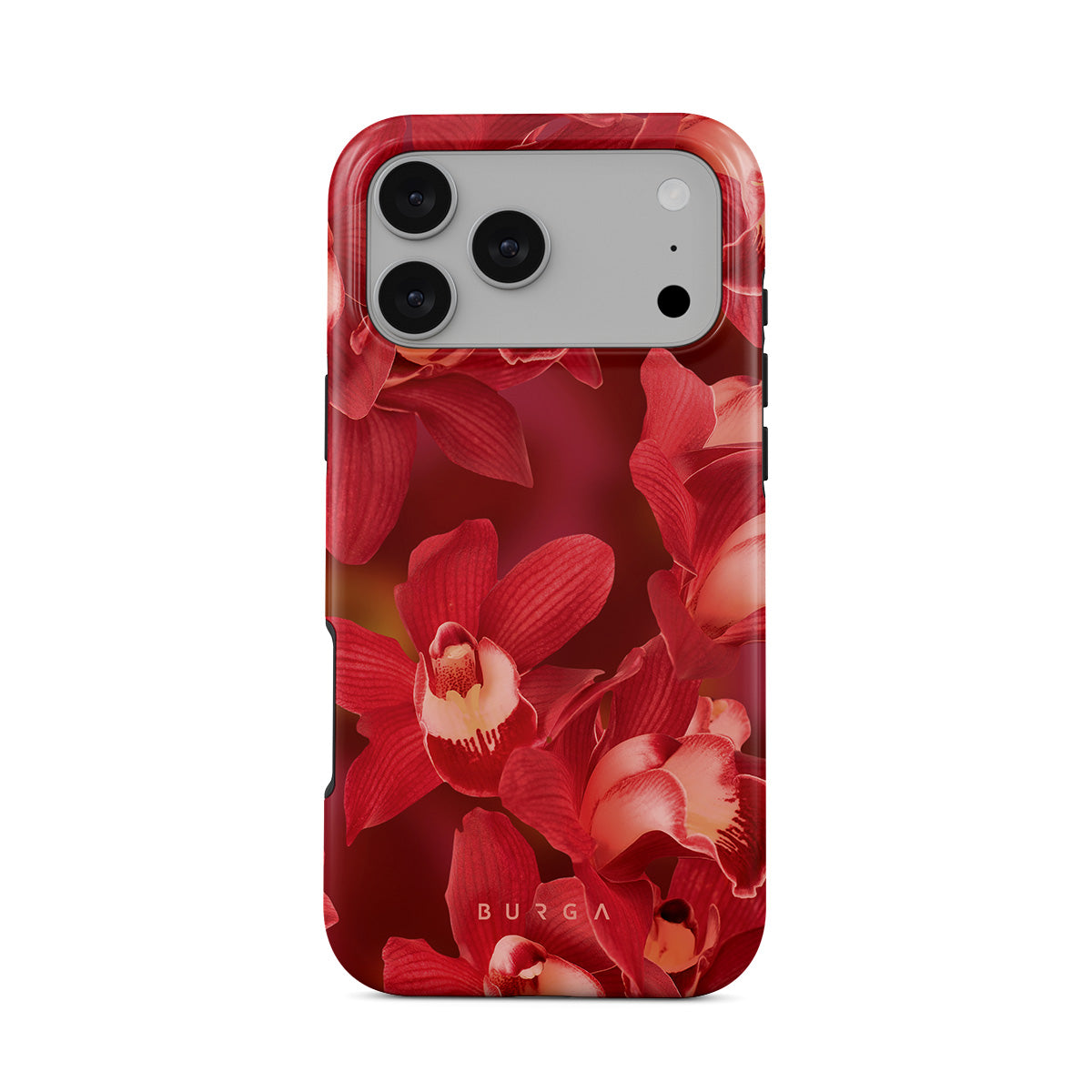 The deep red orchids emerge with a passionate intensity, evoking the fervor and depth of emotions that come with fully experiencing life. They are a vibrant call to embrace every heartbeat, to live deeply and love boldly. Discover the Goddess Energy iPhone 17 Pro Max phone case design.