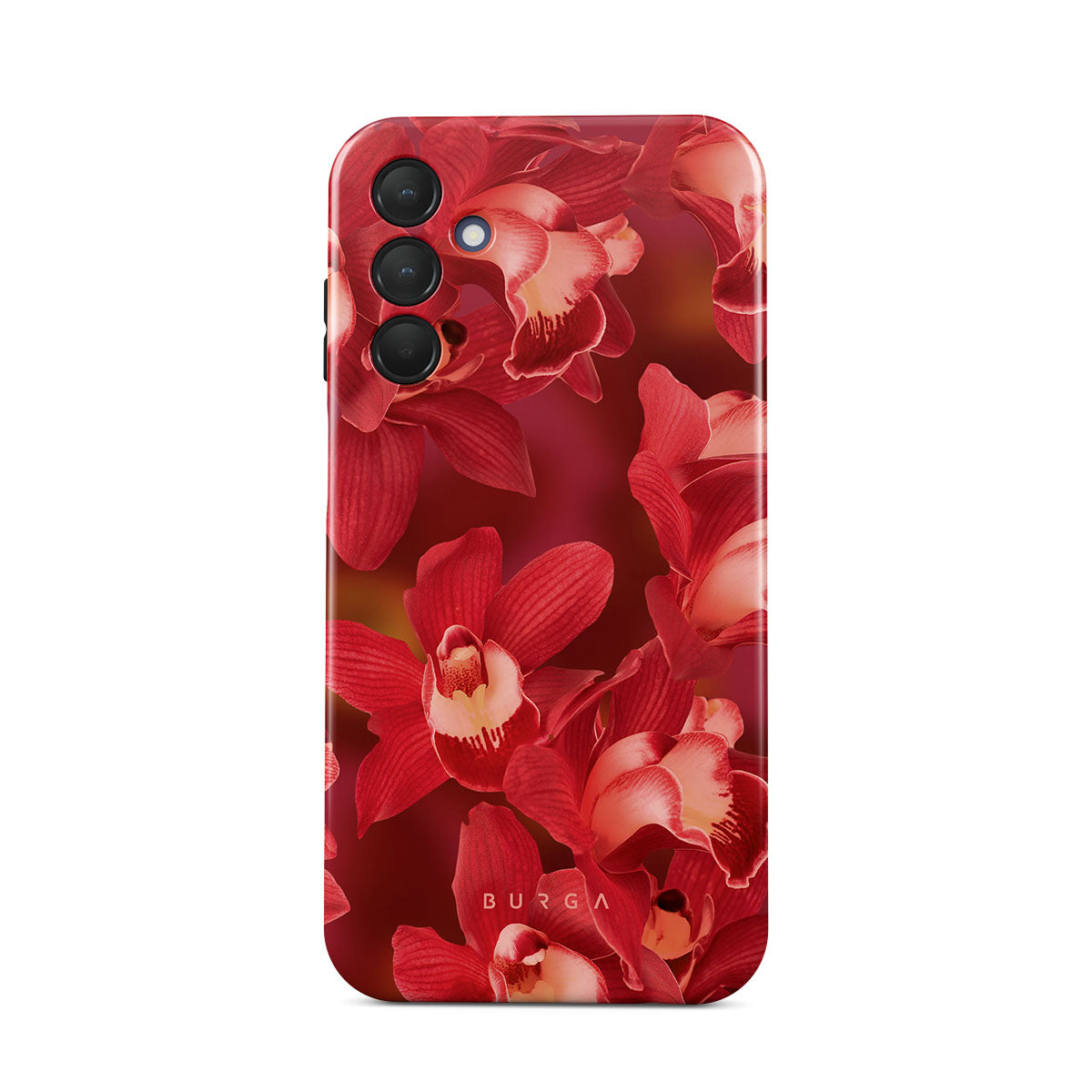 The deep red orchids emerge with a passionate intensity, evoking the fervor and depth of emotions that come with fully experiencing life. They are a vibrant call to embrace every heartbeat, to live deeply and love boldly. Discover the Goddess Energy Samsung Galaxy A15 4G / 5G phone case design.
