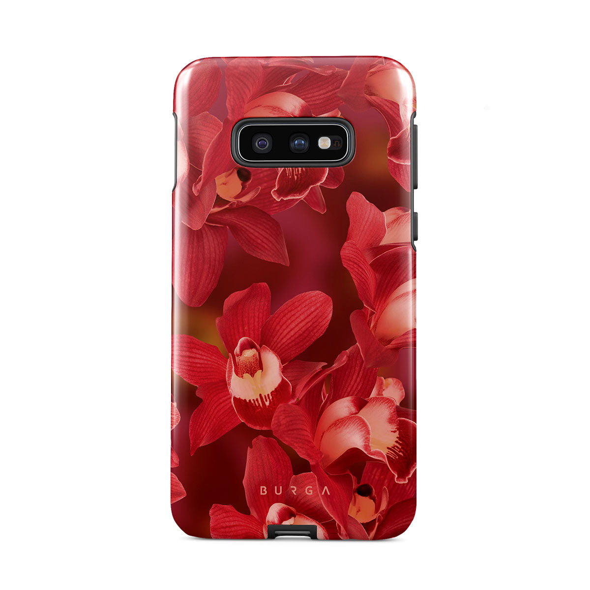 The deep red orchids emerge with a passionate intensity, evoking the fervor and depth of emotions that come with fully experiencing life. They are a vibrant call to embrace every heartbeat, to live deeply and love boldly. Discover the Goddess Energy Samsung Galaxy S10E phone case design.