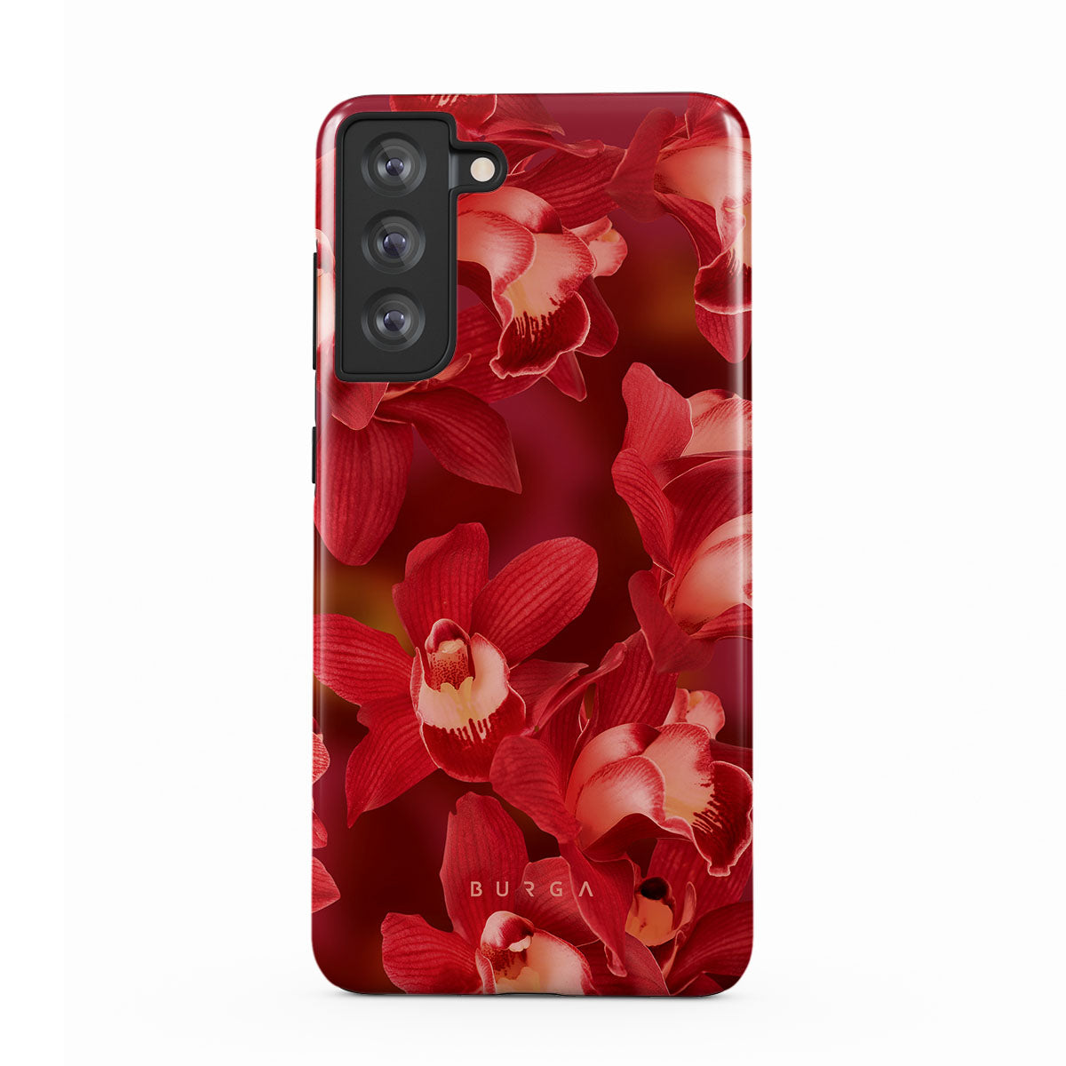 The deep red orchids emerge with a passionate intensity, evoking the fervor and depth of emotions that come with fully experiencing life. They are a vibrant call to embrace every heartbeat, to live deeply and love boldly. Discover the Goddess Energy Samsung Galaxy S21 FE phone case design.