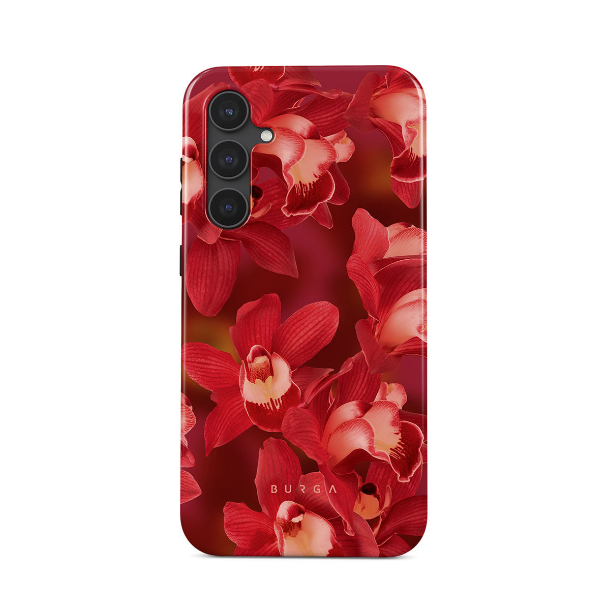 The deep red orchids emerge with a passionate intensity, evoking the fervor and depth of emotions that come with fully experiencing life. They are a vibrant call to embrace every heartbeat, to live deeply and love boldly. Discover the Goddess Energy Samsung Galaxy S23 FE phone case design.