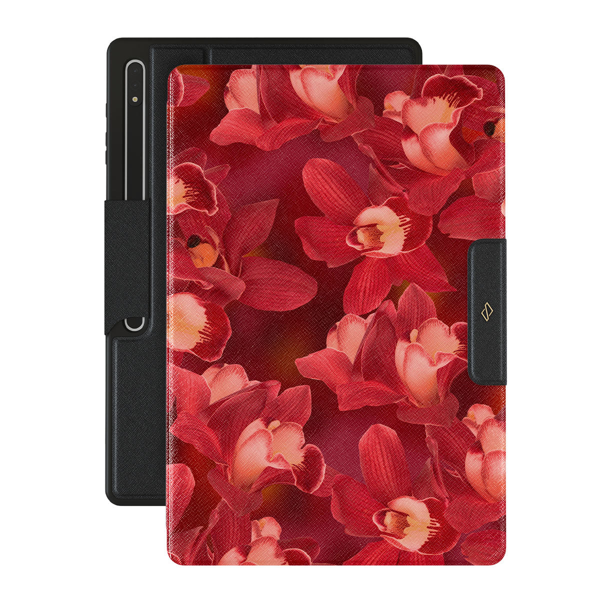 The deep red orchids emerge with a passionate intensity, evoking the fervor and depth of emotions that come with fully experiencing life. They are a vibrant call to embrace every heartbeat, to live deeply and love boldly. Discover the Goddess Energy Samsung Galaxy Tab S10 Ultra folio case design.