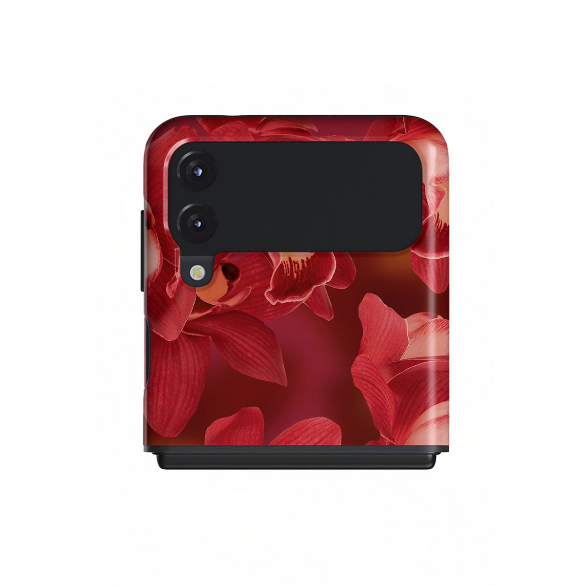 The deep red orchids emerge with a passionate intensity, evoking the fervor and depth of emotions that come with fully experiencing life. They are a vibrant call to embrace every heartbeat, to live deeply and love boldly. Discover the Goddess Energy Samsung Galaxy Z Flip 3 phone case design.