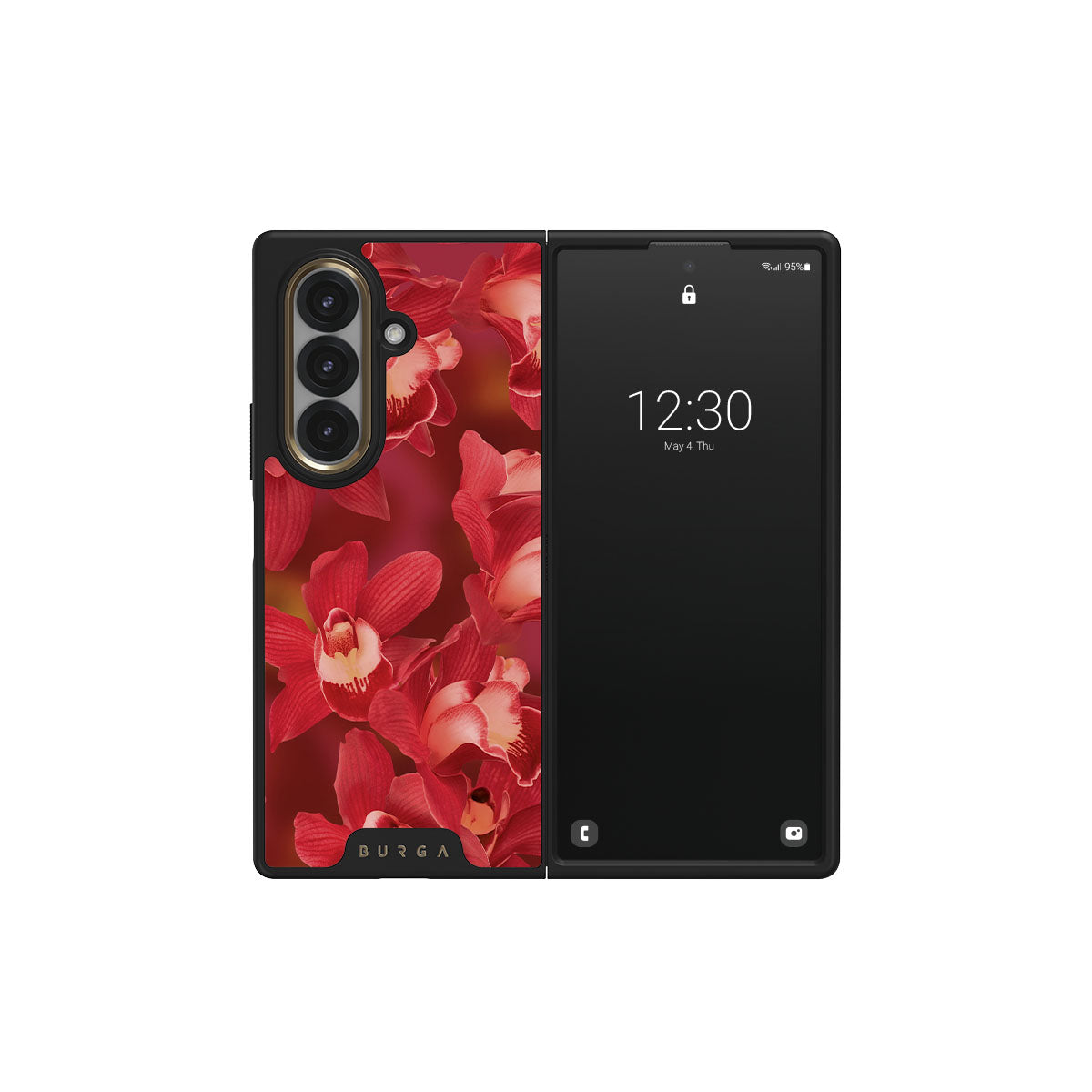 The deep red orchids emerge with a passionate intensity, evoking the fervor and depth of emotions that come with fully experiencing life. They are a vibrant call to embrace every heartbeat, to live deeply and love boldly. Discover the Goddess Energy Samsung Galaxy Z Fold 7 phone case design.
