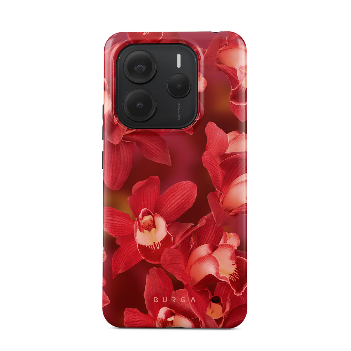 The deep red orchids emerge with a passionate intensity, evoking the fervor and depth of emotions that come with fully experiencing life. They are a vibrant call to embrace every heartbeat, to live deeply and love boldly. Discover the Goddess Energy Xiaomi Redmi Note 14 5G phone case design.