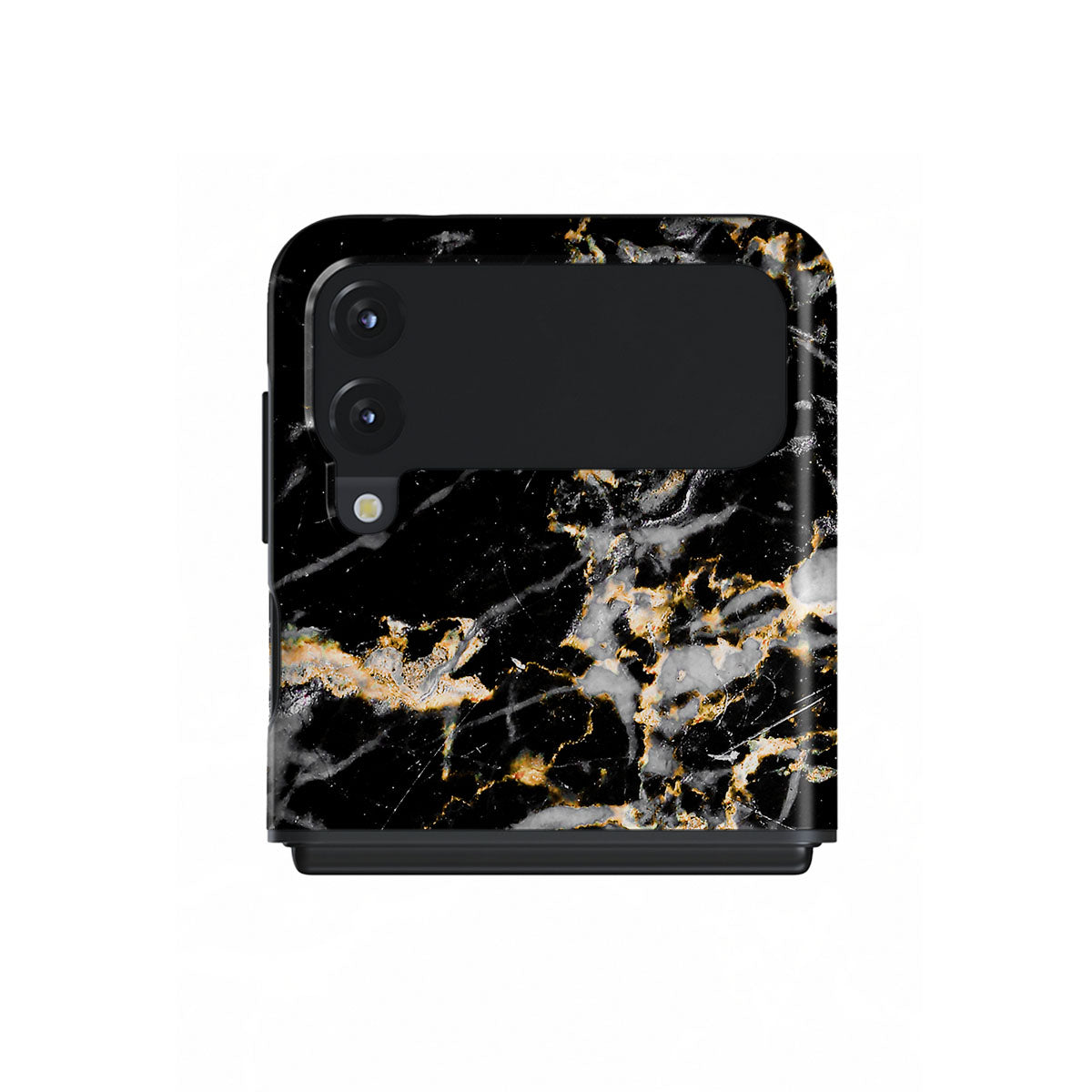 Our captivating Make A Wish Samsung Galaxy Z Flip 3 phone case showcases a timeless combination of black marble enriched with gold specks. The golden marble details radiate elegance and add luxury to every wardrobe.
