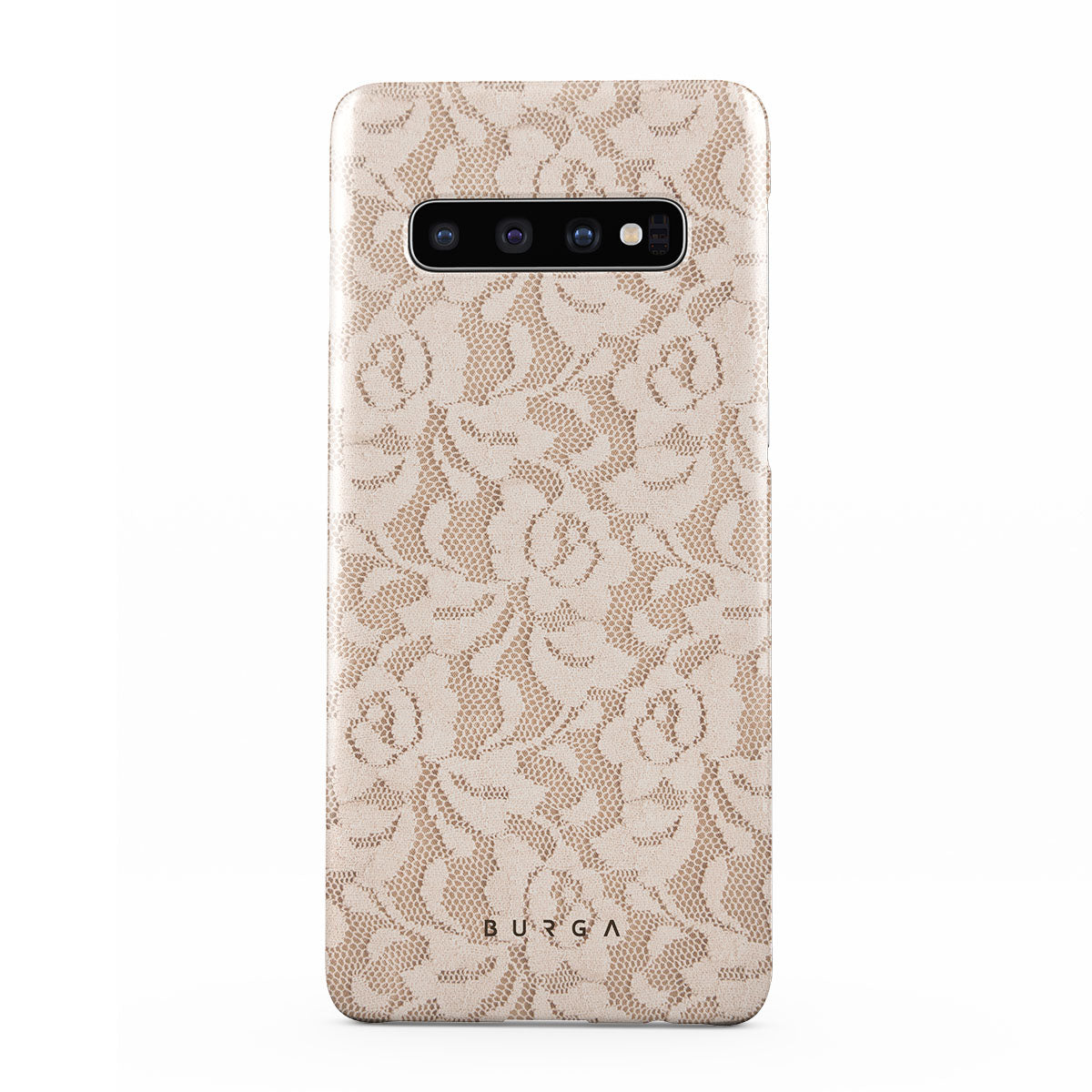 Step into a world of vintage sophistication with the Gone Country Samsung Galaxy S10 Plus phone case. Featuring an intricate neutral lace pattern, this design exudes grace and refinement. It's a tribute to the elegant side of country life—ideal for those who love to keep things classy.