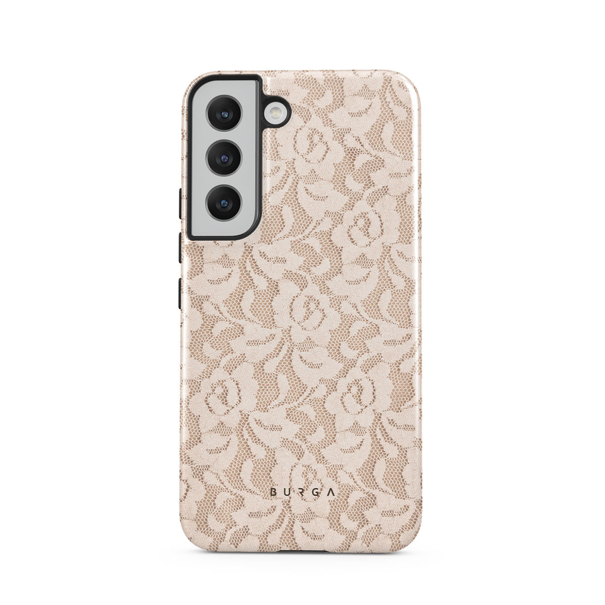 Step into a world of vintage sophistication with the Gone Country Samsung Galaxy S22 phone case. Featuring an intricate neutral lace pattern, this design exudes grace and refinement. It's a tribute to the elegant side of country life—ideal for those who love to keep things classy.