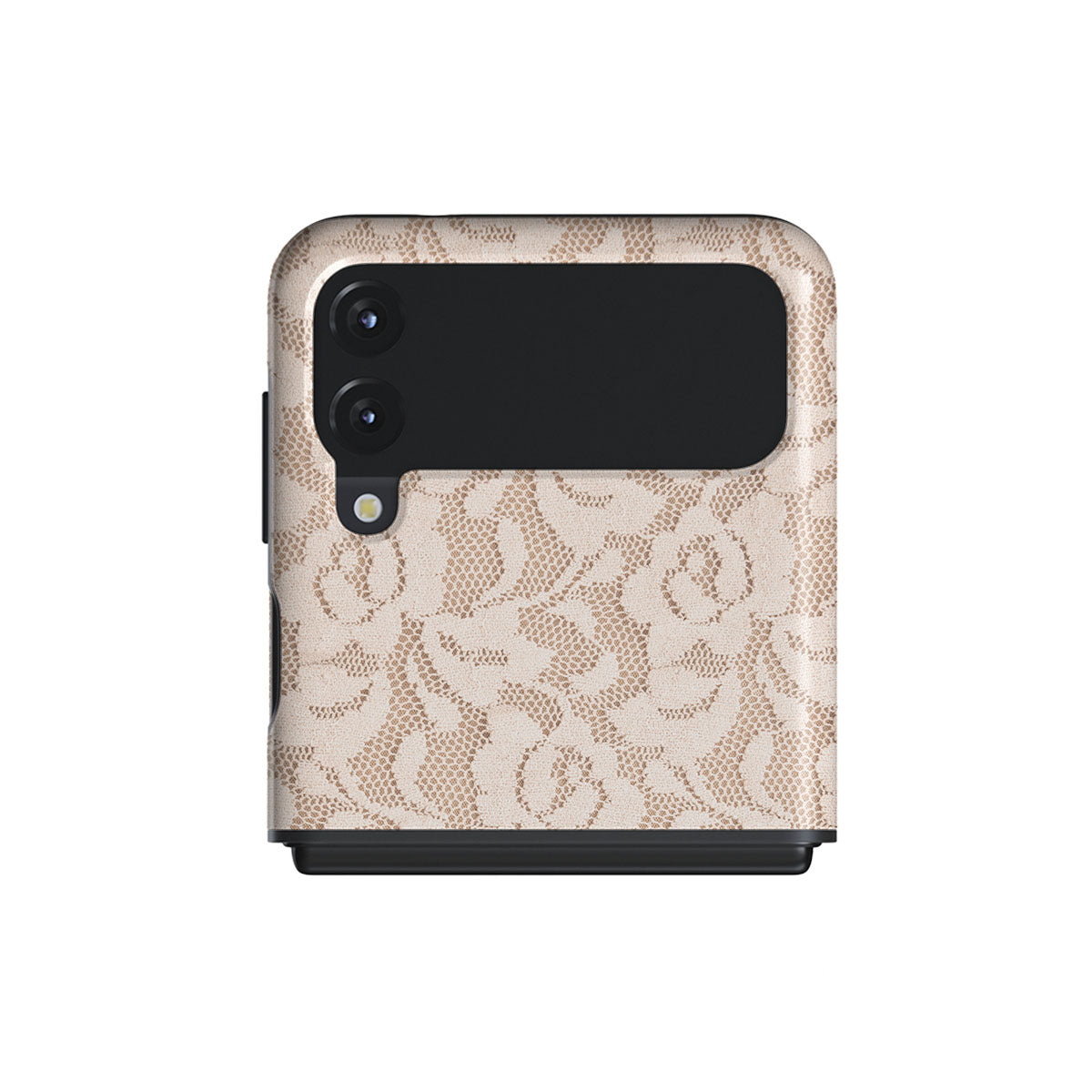 Step into a world of vintage sophistication with the Gone Country Samsung Galaxy Z Flip 3 phone case. Featuring an intricate neutral lace pattern, this design exudes grace and refinement. It's a tribute to the elegant side of country life—ideal for those who love to keep things classy.