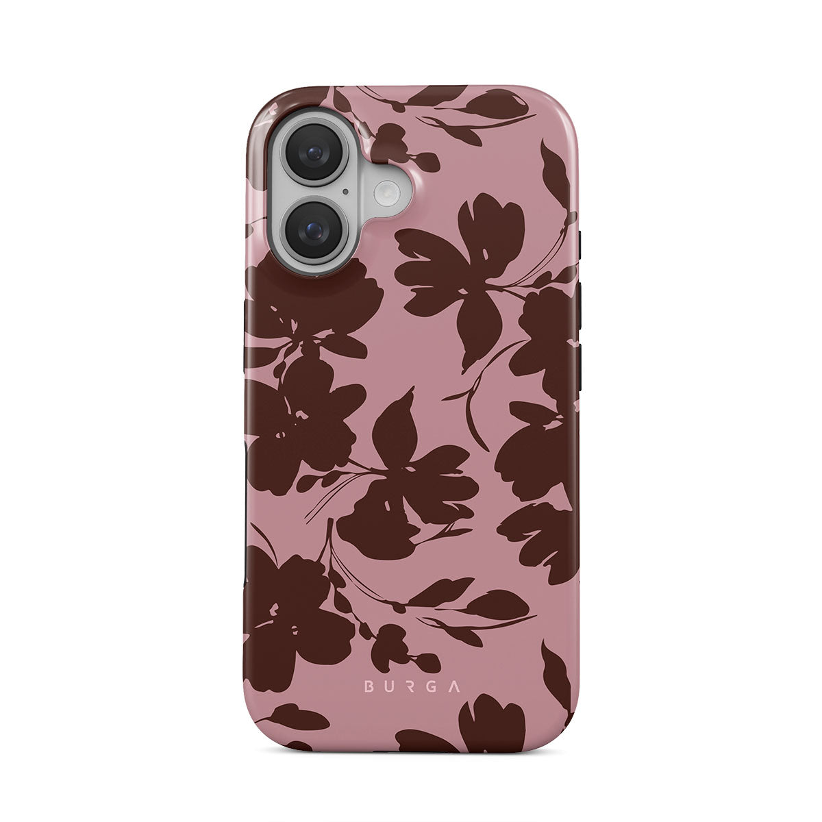 Quietly bold, our Gossip iPhone 16 phone case design speaks volumes in subtlety. A soft rosé background, layered with deep red-brown floral accents, gives off a refined, almost mysterious vibe. It's for those who let the details do the talking.