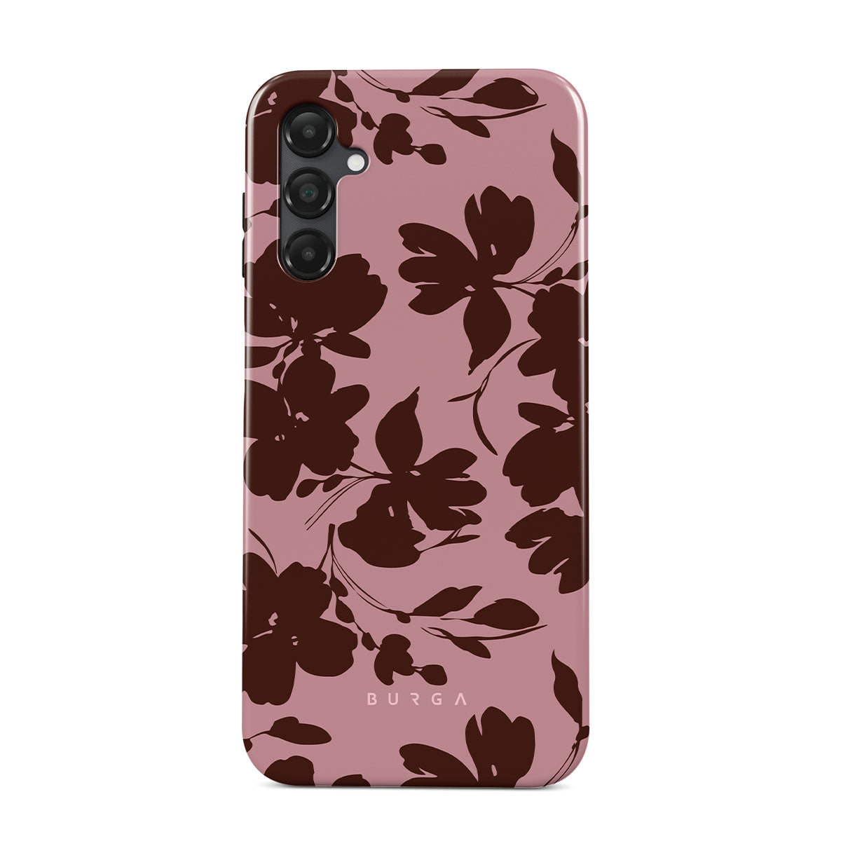Quietly bold, our Gossip Samsung Galaxy A25 phone case design speaks volumes in subtlety. A soft rosé background, layered with deep red-brown floral accents, gives off a refined, almost mysterious vibe. It's for those who let the details do the talking.