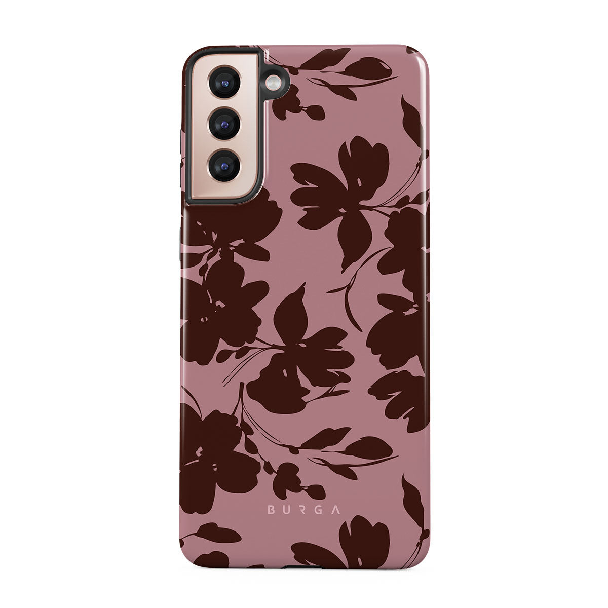 Quietly bold, our Gossip Samsung Galaxy S21 Plus phone case design speaks volumes in subtlety. A soft rosé background, layered with deep red-brown floral accents, gives off a refined, almost mysterious vibe. It's for those who let the details do the talking.