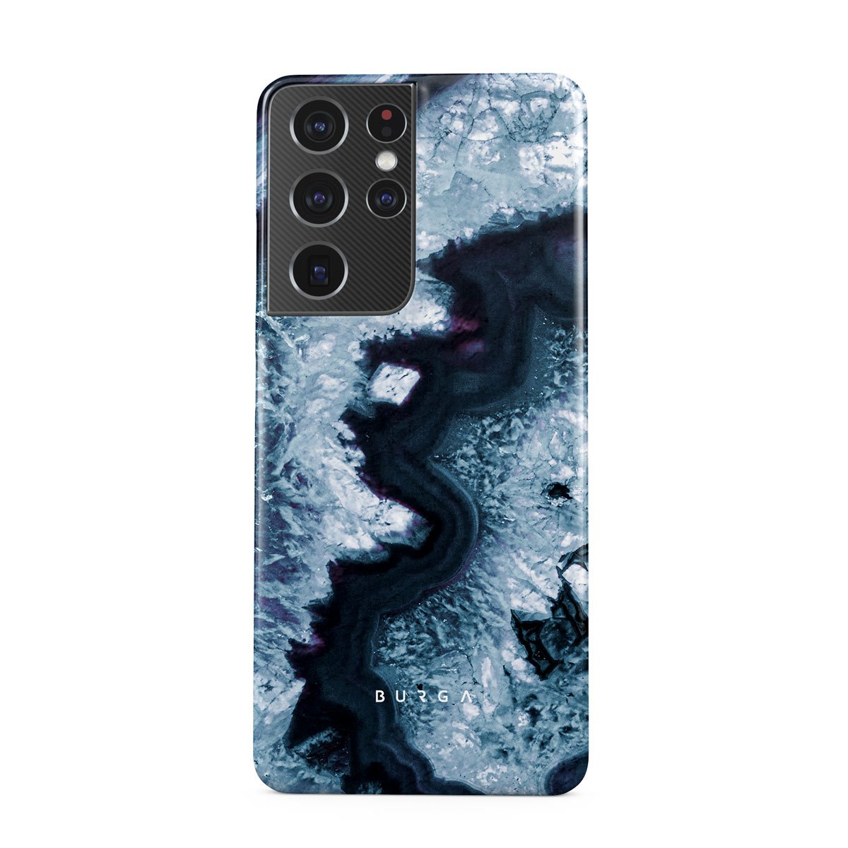 The gray marble pattern of our hard-shell Samsung Galaxy S21 Ultra phone case inspired by the frozen lake adds a dreamy cool-toned blue color that is sure to become a hit in everyone's style. Frost-inspired gray marble swirls look enchanting while protecting your cellphone.