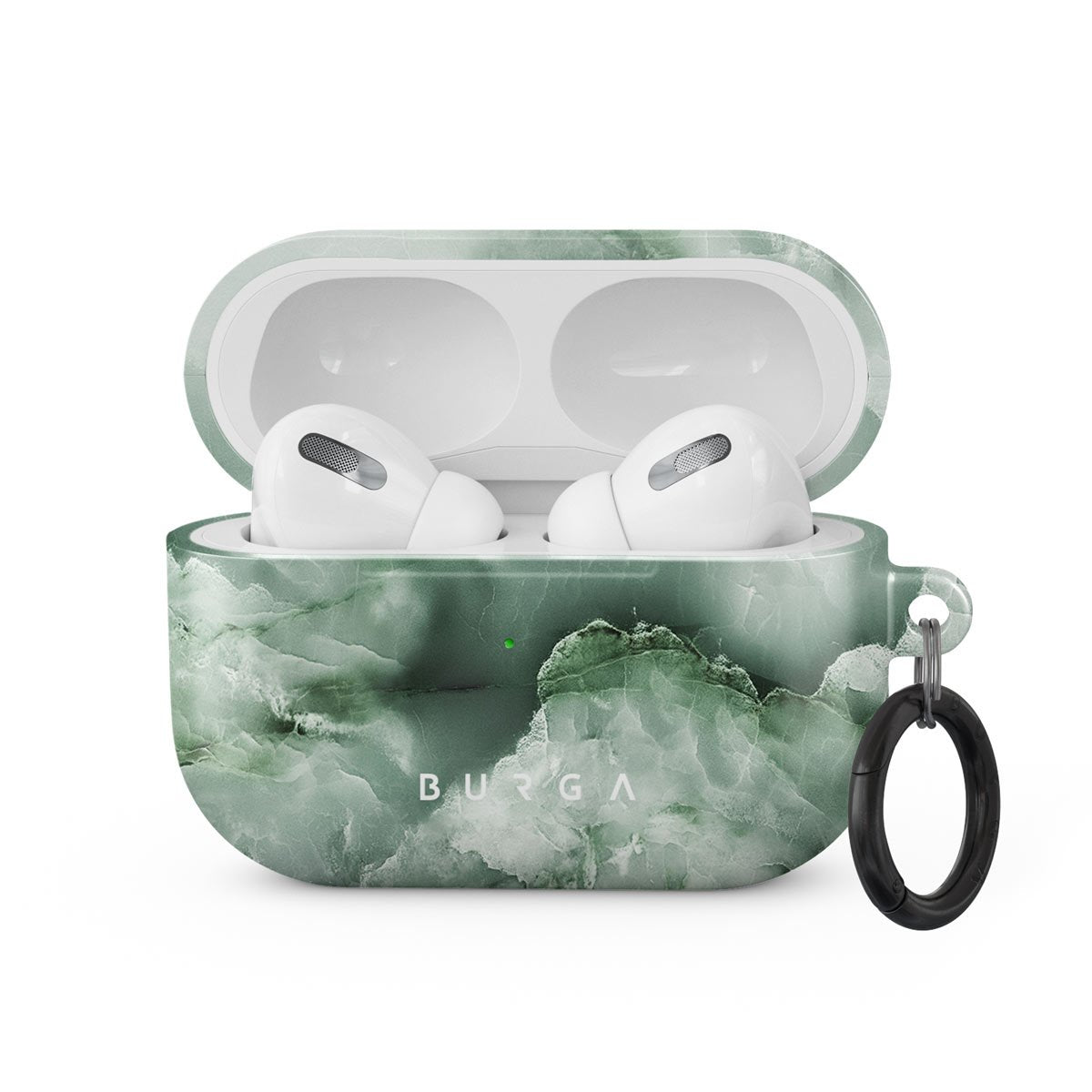 Inspired by the soft green color of pistachios, our Pistachio Cheesecake Apple Airpods Pro case cover combines mesmerizing green gradient with the timeless marble trend. Such a hard-shell case will provide heavy-duty protection while adding a touch of a designer feel to your collection. Our case fits perfectly snug around Apple Airpods Pro . “Like a glove!” one might say. And it won’t disrupt the wireless charging capabilities of the newer model. There’s even an LED light indicator to prove it (don’t worry, wired charging still works, too). When fitted, the BURGA case will protect the delicate Apple Airpods Pro case beneath it from scratches, bumps, and drops while remaining scratch-free itself. Our signature design pattern prints are High Quality, and will never peel or fade away- thanks to our unique printing technology. And finally, a handy carabiner is there to make your life easier and more convenient: just snap it around your keys or belt loop and tackle the day head-on. Your music is right there by your side when you need it.