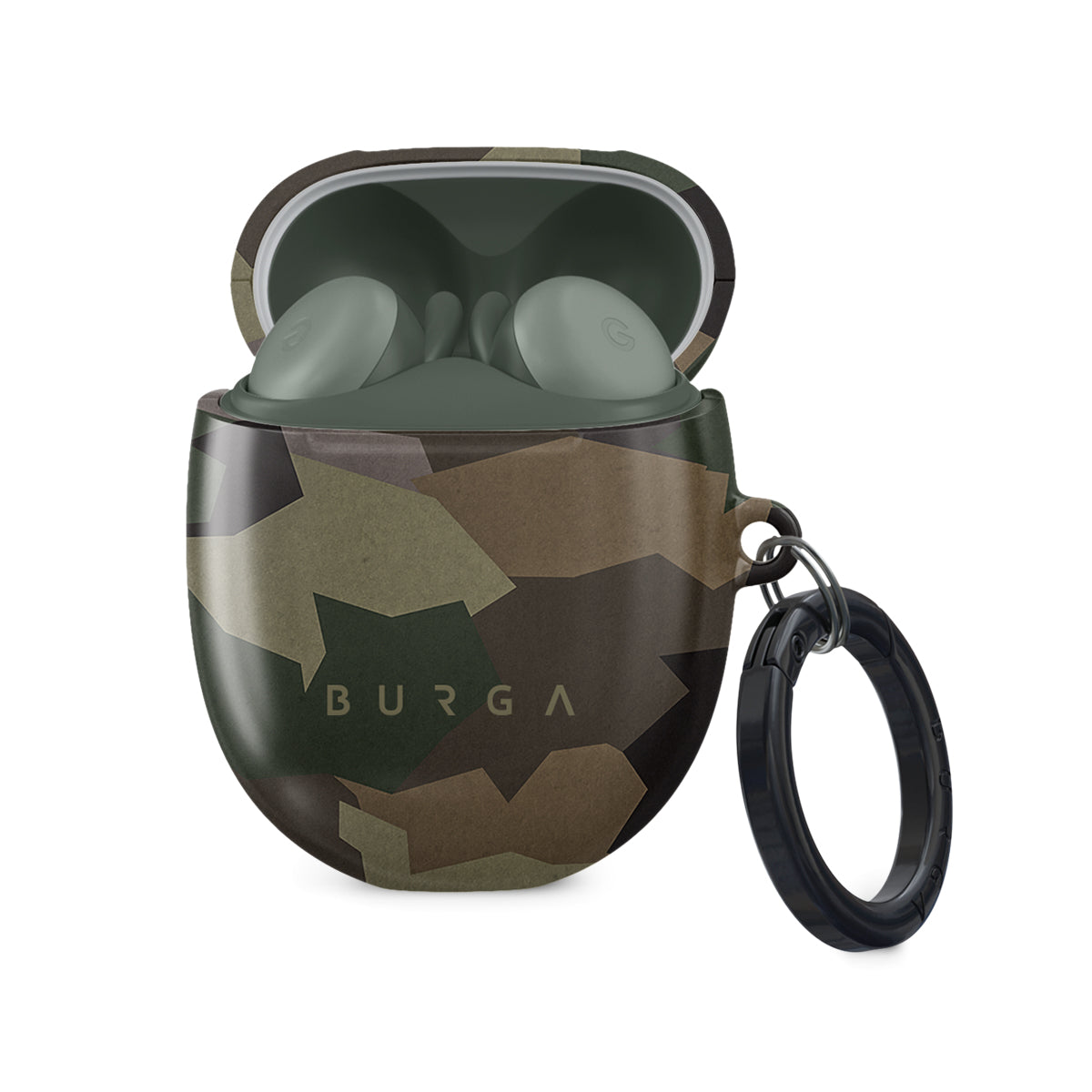 With our Tropical Green Camo Google Pixel Buds A case cover, add some fierceness and toughness to your wardrobe and make a fashionable accessory out of your Google Pixel Buds A case. Match it with your style and keep it protected in style. Our case fits perfectly snug around Google Pixel Buds A . “Like a glove!” one might say. And it won’t disrupt the wireless charging capabilities of the newer model. There’s even an LED light indicator to prove it (don’t worry, wired charging still works, too). When fitted, the BURGA case will protect the delicate Google Pixel Buds A case beneath it from scratches, bumps, and drops while remaining scratch-free itself. Our signature design pattern prints are High Quality, and will never peel or fade away- thanks to our unique printing technology. And finally, a handy carabiner is there to make your life easier and more convenient: just snap it around your keys or belt loop and tackle the day head-on. Your music is right there by your side when you need it.