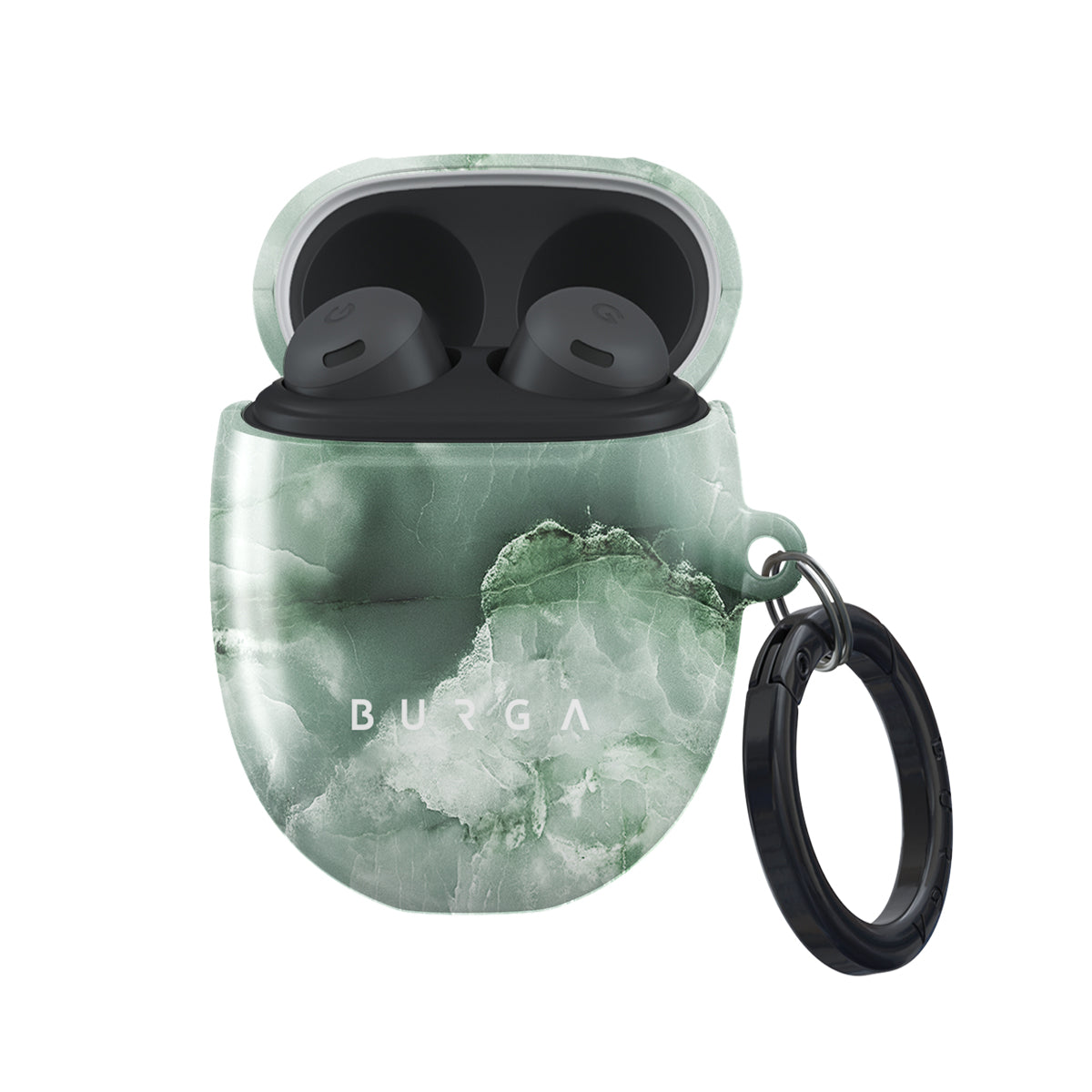 Inspired by the soft green color of pistachios, our Pistachio Cheesecake Google Pixel Buds Pro case cover combines mesmerizing green gradient with the timeless marble trend. Such a hard-shell case will provide heavy-duty protection while adding a touch of a designer feel to your collection. Our case fits perfectly snug around Google Pixel Buds Pro . “Like a glove!” one might say. And it won’t disrupt the wireless charging capabilities of the newer model. There’s even an LED light indicator to prove it (don’t worry, wired charging still works, too). When fitted, the BURGA case will protect the delicate Google Pixel Buds Pro case beneath it from scratches, bumps, and drops while remaining scratch-free itself. Our signature design pattern prints are High Quality, and will never peel or fade away- thanks to our unique printing technology. And finally, a handy carabiner is there to make your life easier and more convenient: just snap it around your keys or belt loop and tackle the day head-on. Your music is right there by your side when you need it.
