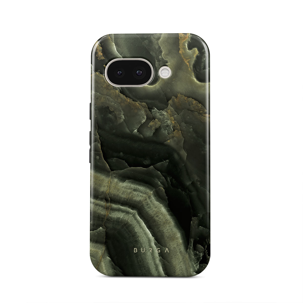 Carry the mystery of unexplored land found in an ominous misty forest with a green marble Google Pixel 9a phone case inspired by it. The case combines the popular marble trend with heavy-duty protection becoming a unique companion to your device.