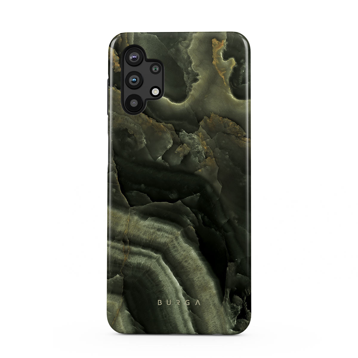 Carry the mystery of unexplored land found in an ominous misty forest with a green marble Samsung Galaxy A32 5G phone case inspired by it. The case combines the popular marble trend with heavy-duty protection becoming a unique companion to your device.