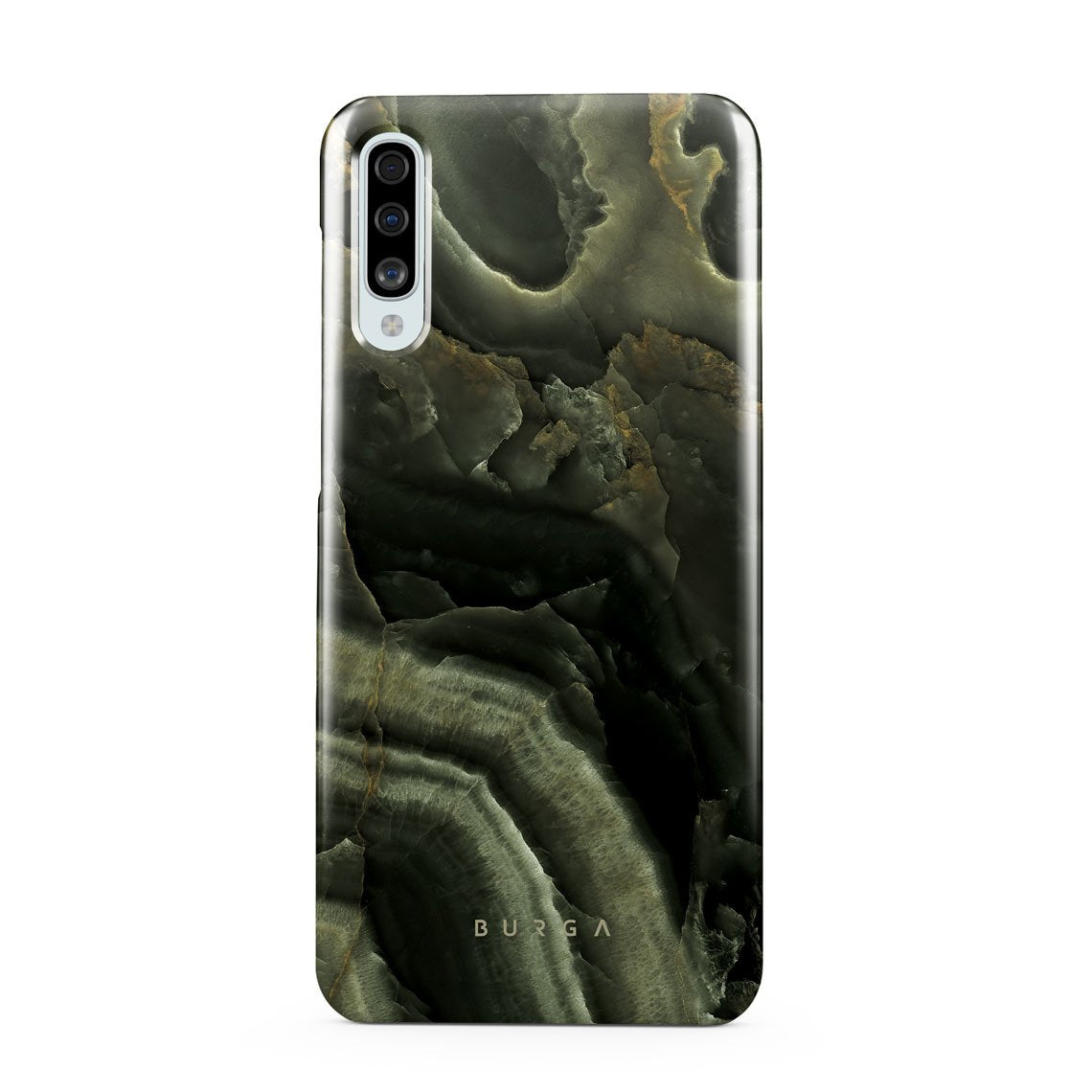Carry the mystery of unexplored land found in an ominous misty forest with a green marble Samsung Galaxy A50 phone case inspired by it. The case combines the popular marble trend with heavy-duty protection becoming a unique companion to your device.